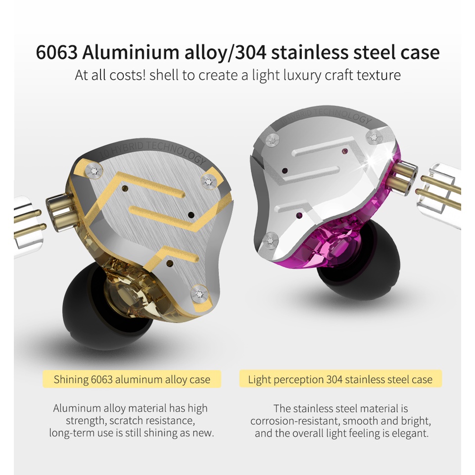 KZ ZS10 PRO Hybrid 4BA+1DD In-Ear Headphones HiFi Stereo Wired Earphones Professional Waterproof Metal IEM Noise Cancelling Monitor Earbuds for ZSN PRO ZAS