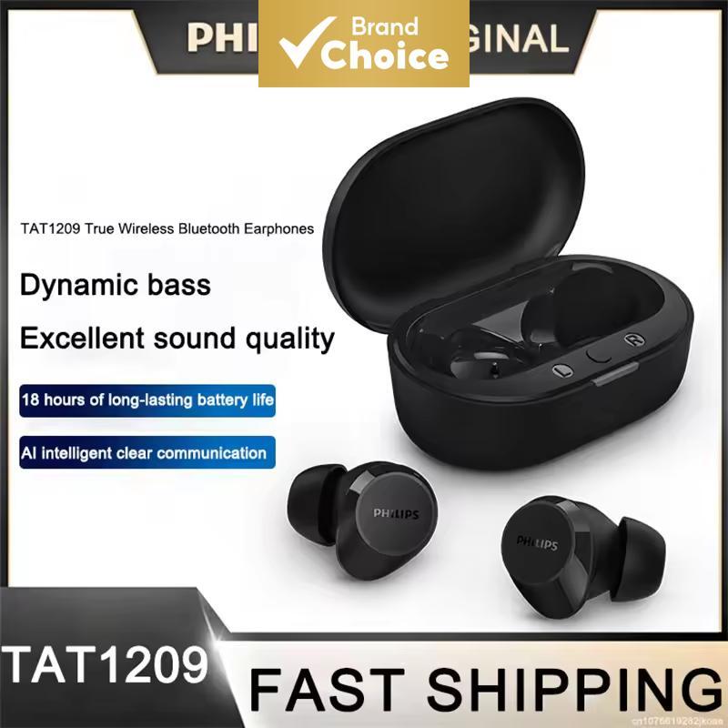 Philips TAT1209 Earbuds Waterproof Earphones IPX4 Waterproof Noise Reduction Bluetooth Earplug High Fidelity HD Wireless Earphone Touch Control 18H Playback Time