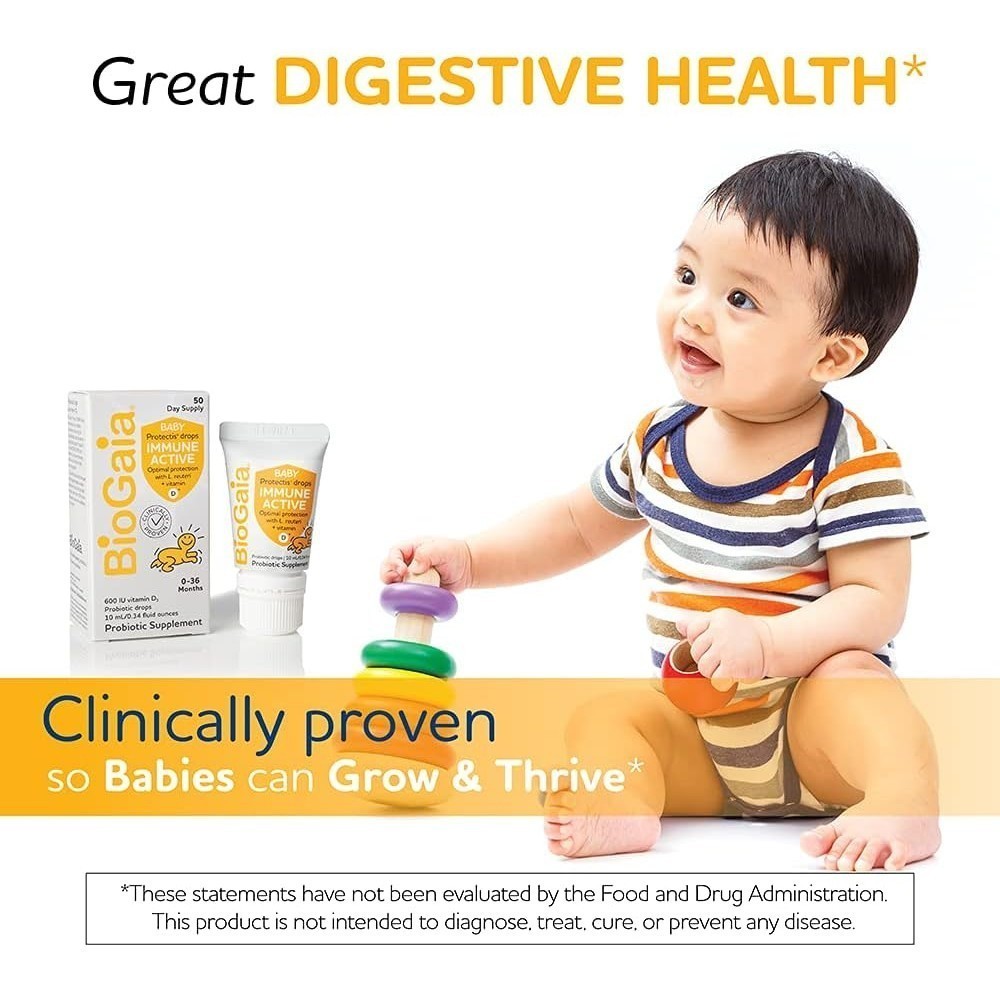 Biogaia Baby Probiotic Drops Immune Active Optimal Protection 600 IU for 0-36 Months, 10 ml/0.34 oz