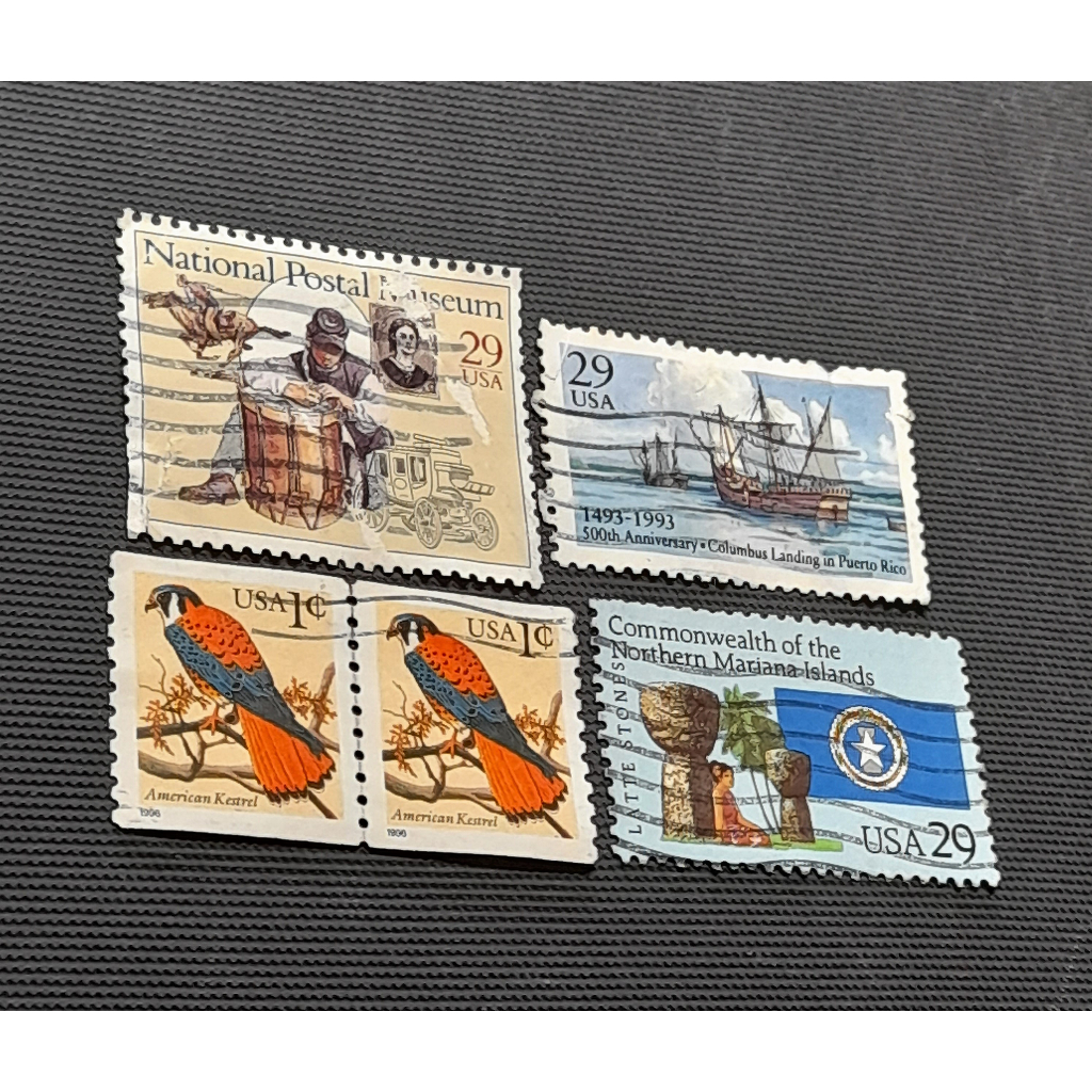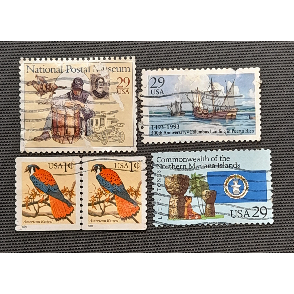 USA Stamp set: Expanding Nation, Columbus' Landing, American Kestrel, & Northern Mariana Islands