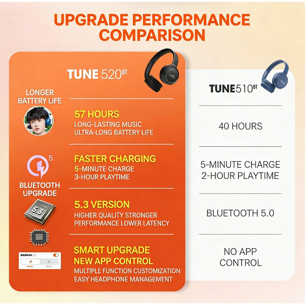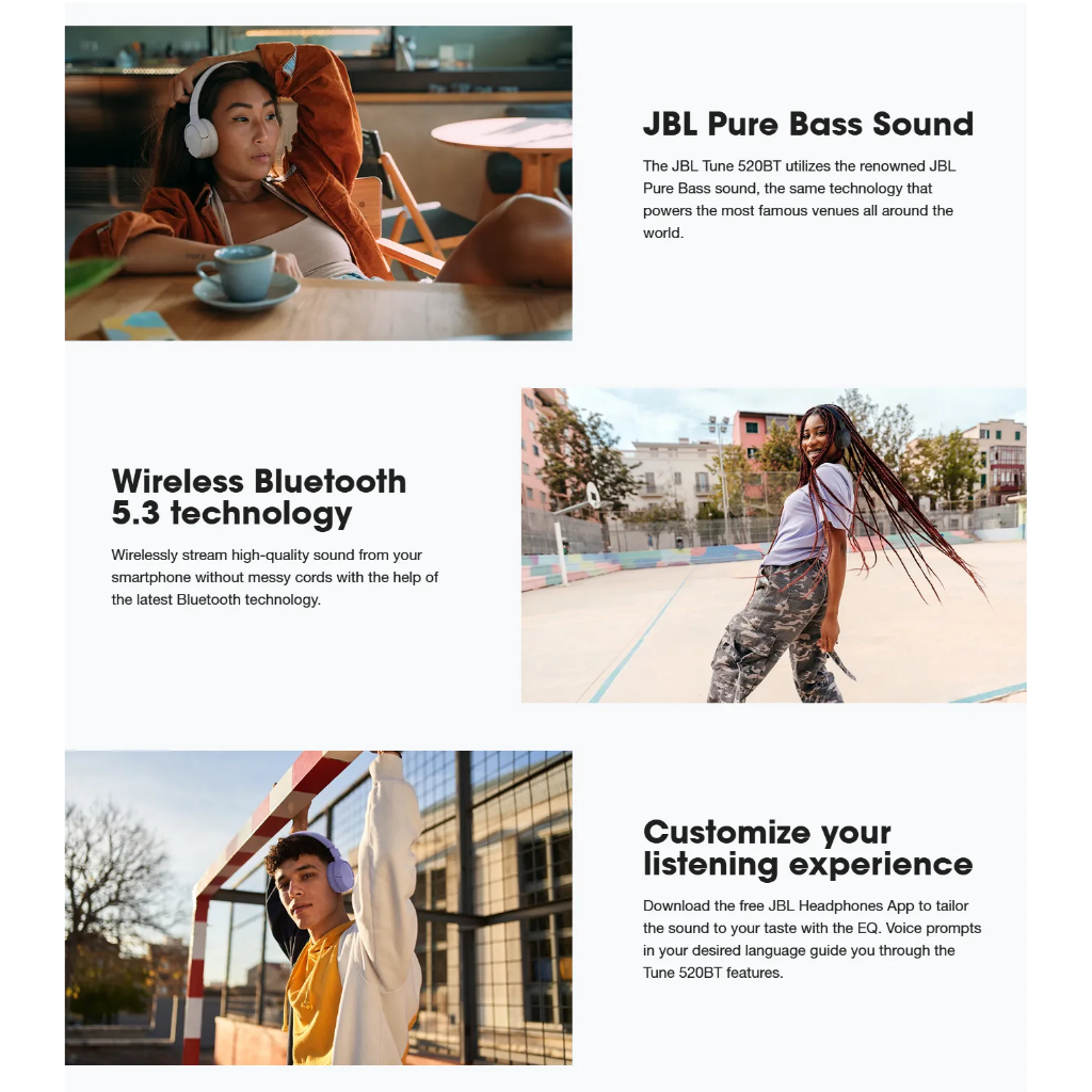 J,B,L Tune 520BT Wireless On-Ear Headphones 57H Foldable Headset Mic Original CN
