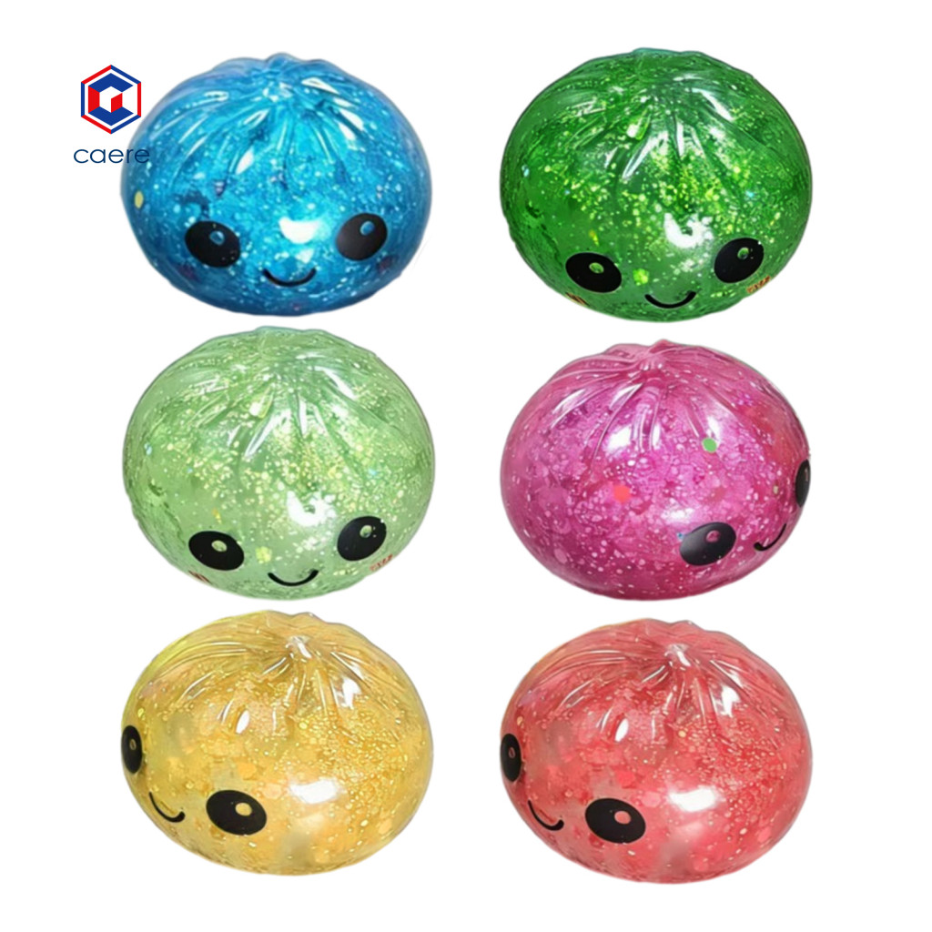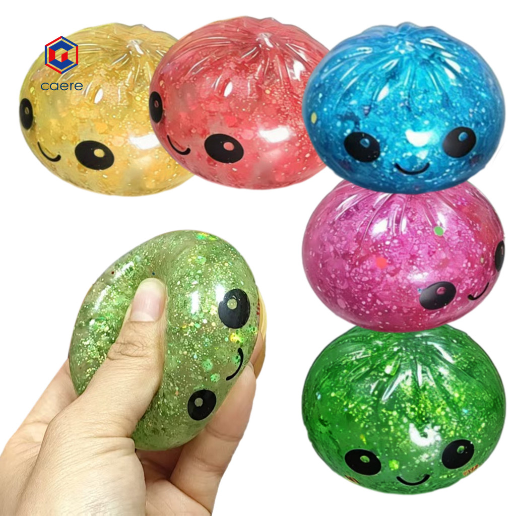 CAE| Stress Relief Dumpling Toy Slow Toy Glitter Dumpling Squeeze Toy Smiling Steamed Bun Fidget Stress Relief Squishy Decompression Ball Stretchy Desk Toy for Kids Adults Fun