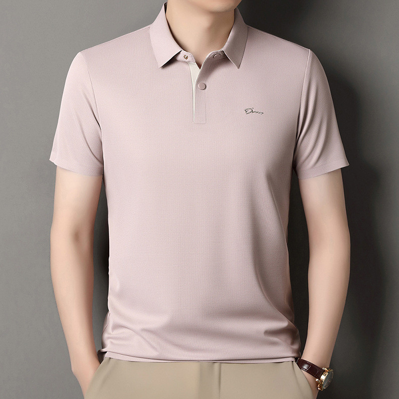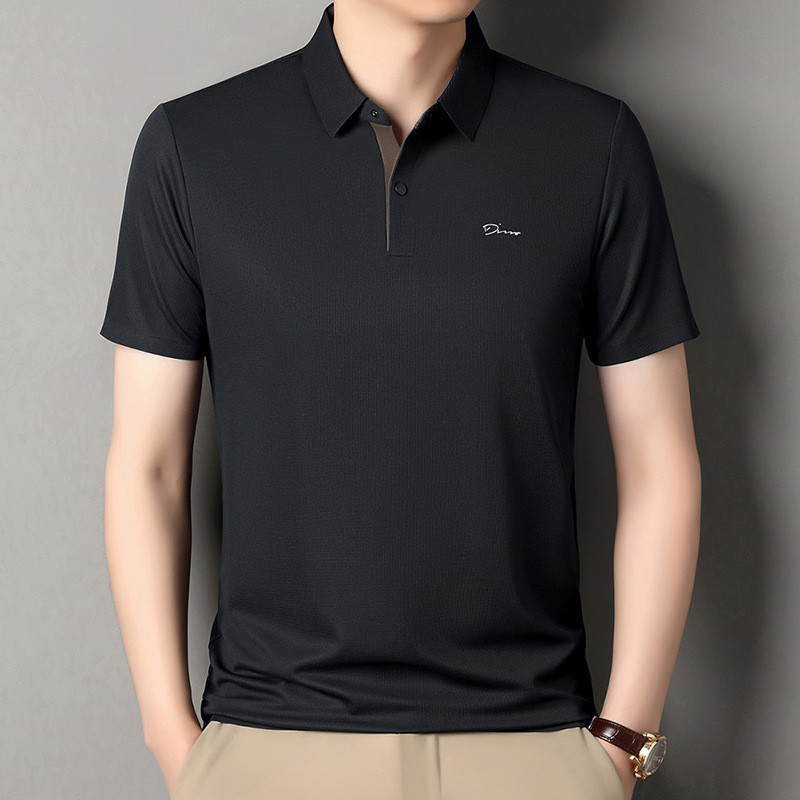 Station Outside Solid Color Short-Sleeved POLO Shirt Men Middle-aged Youth Summer Casual All-Match Lapel T-Shirt Top ODY5