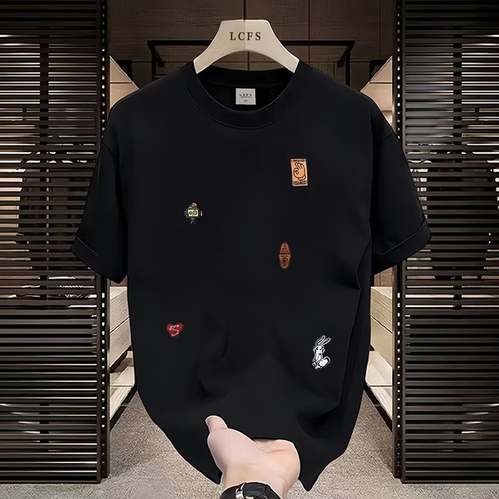 Street Wear Short-Sleeved Pure Cotton Summer Men Printed T-Shirt Trendy Men Women All-Match Round Neck T-Shirt Men 1VCB