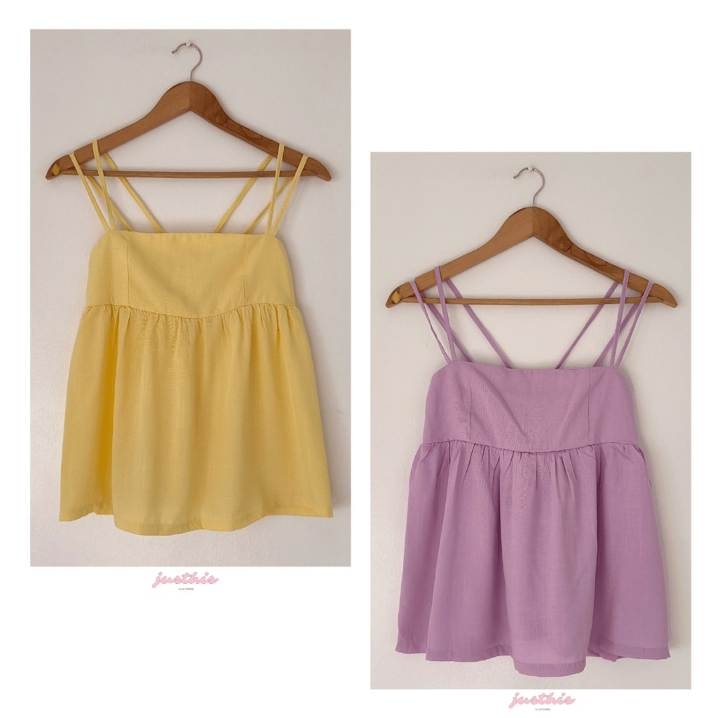 Vanna Double Strap Linen Peplum Top • Justhis Clothing
