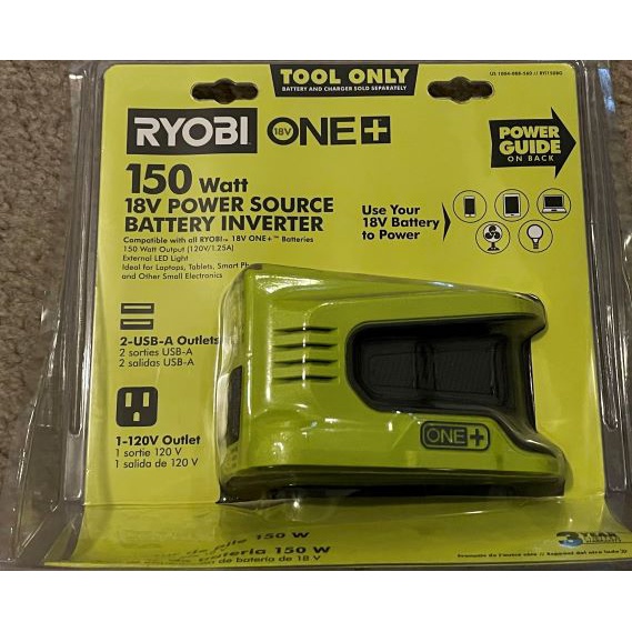 RYOBI RYi150BG 150-Watt Powered Inverter for ONE+ 18-Volt Battery, 110V output. Brand new sealed.