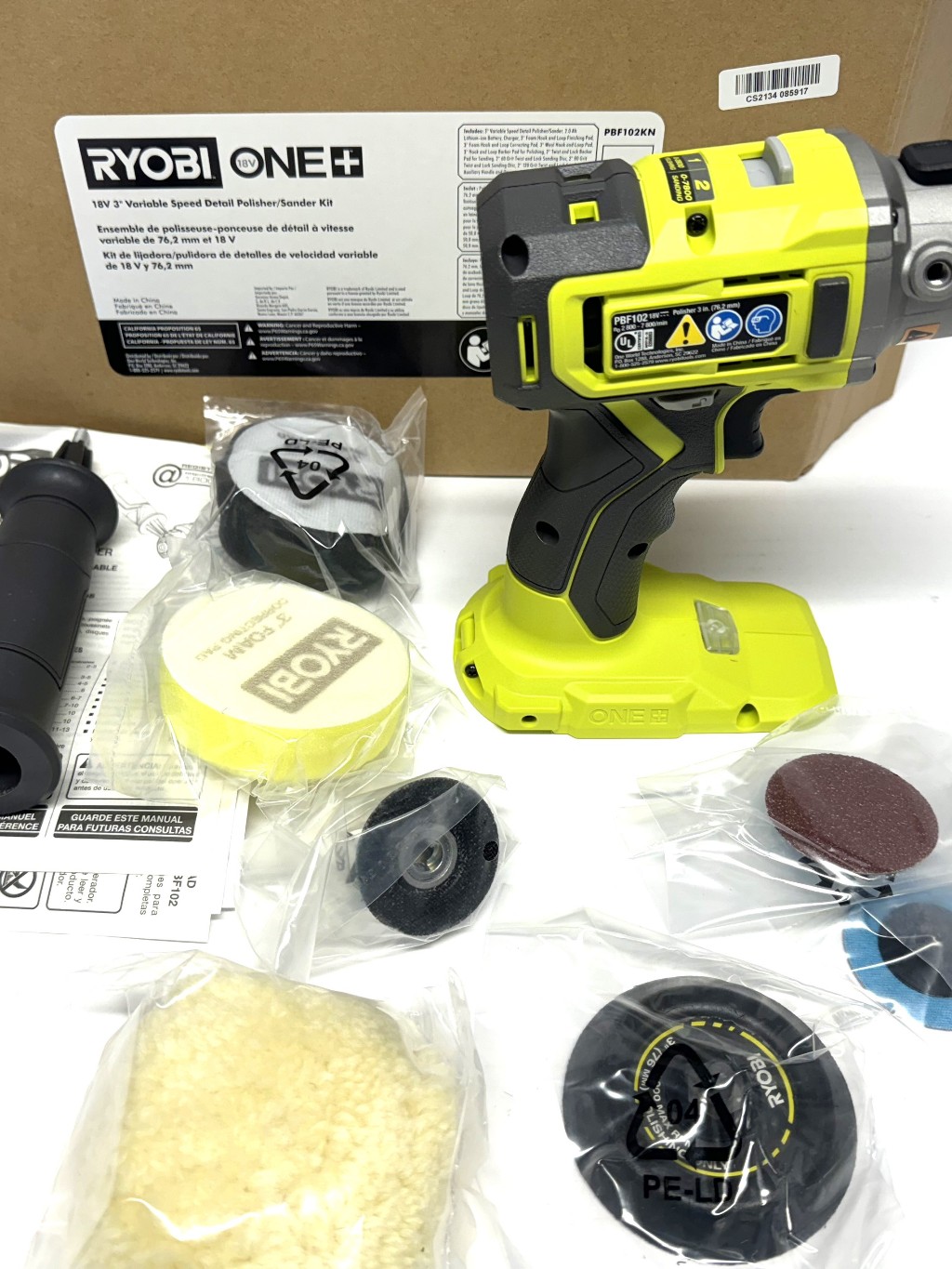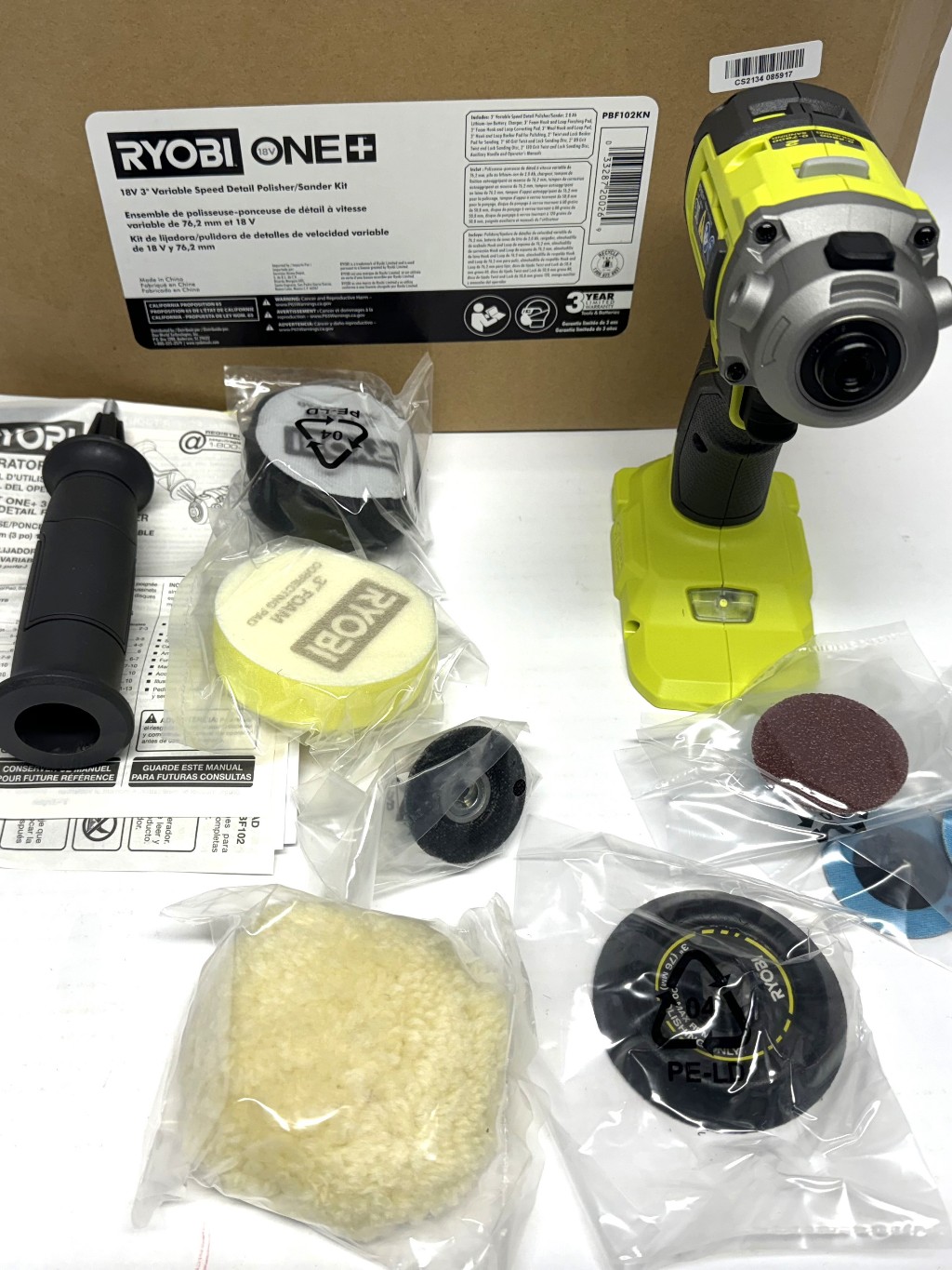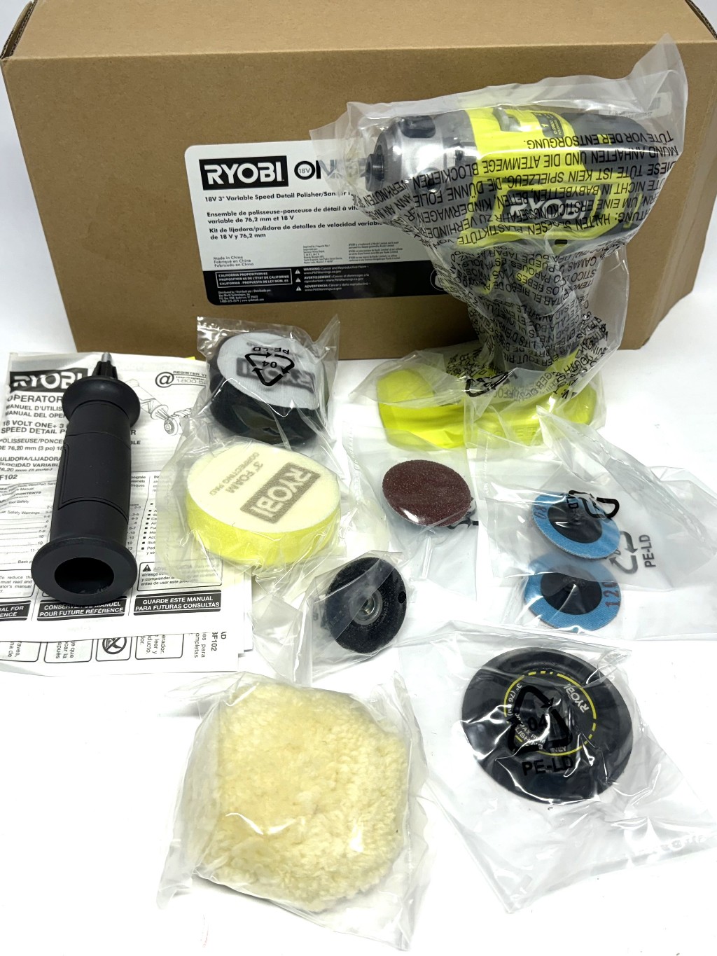 RYOBI PBF102KN 18V Cordless 3 in. Variable Speed Detail Polisher/Sander Kit w/ (1) 2.0 Ah Battery an