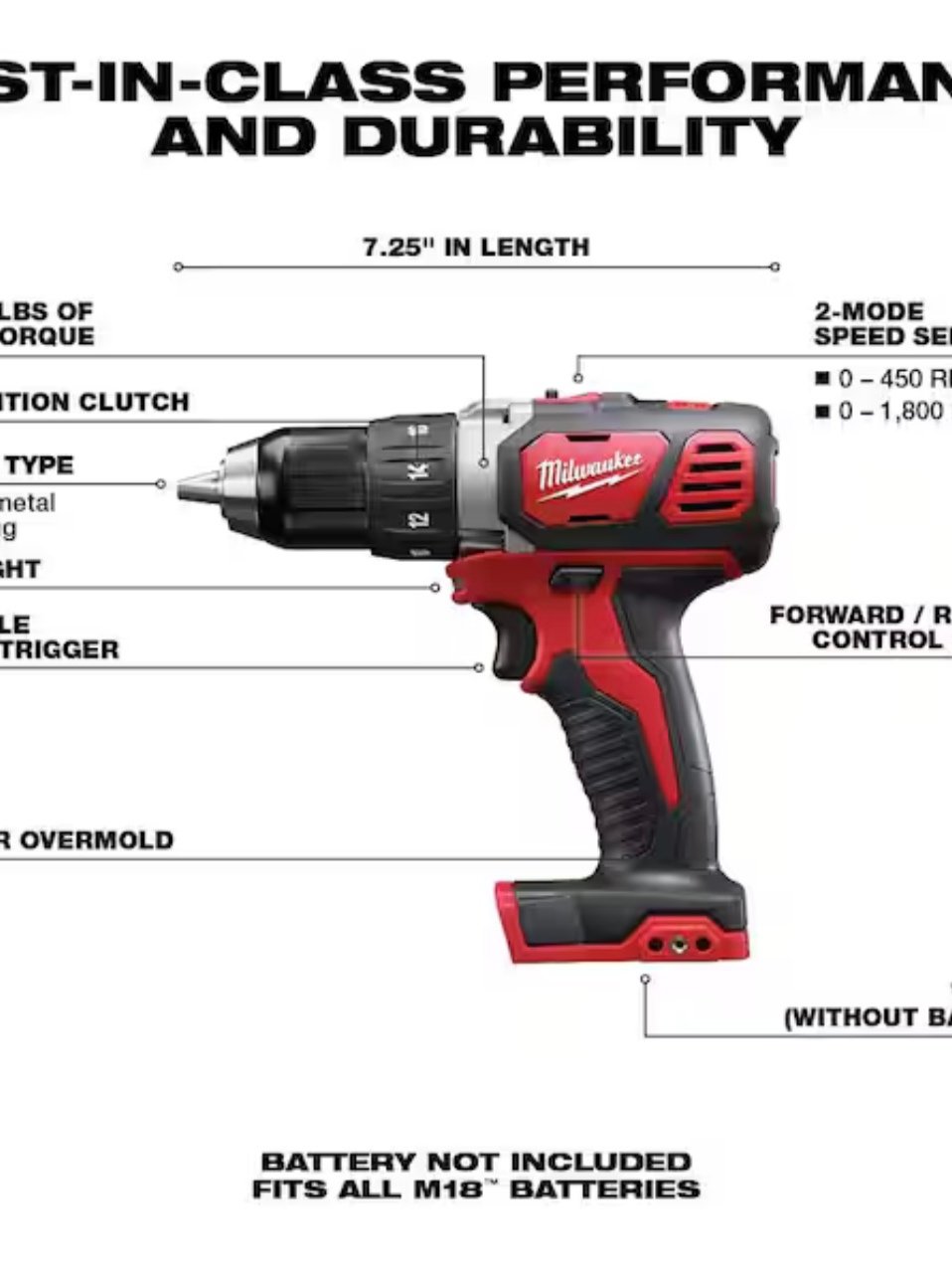Milwaukee 2606-20 M18 18V Lithium-Ion Cordless 1/2 in. Drill Driver (Tool-Only - No battery & charge
