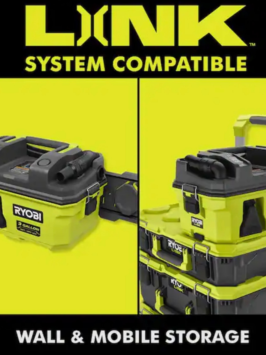 RYOBI PCL734B 18V LINK Cordless 3 Gal. Wet/Dry Vacuum (Tool Only), Powerful and versatile cleaning w