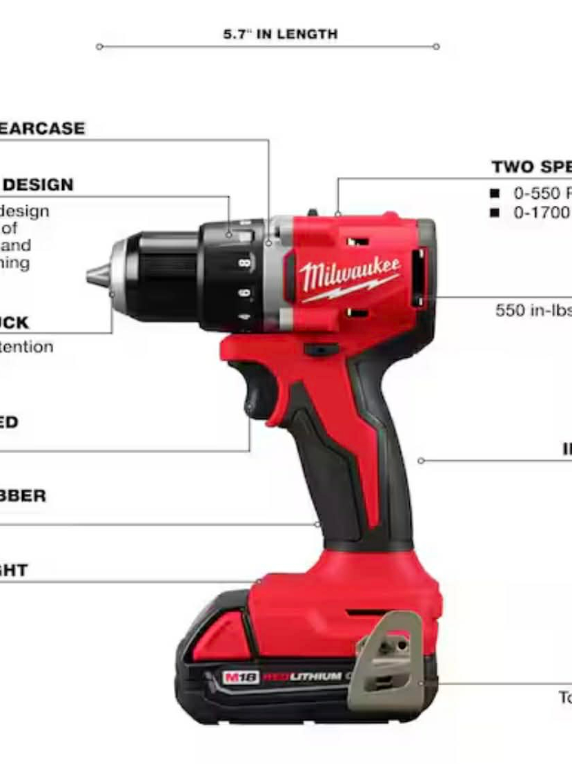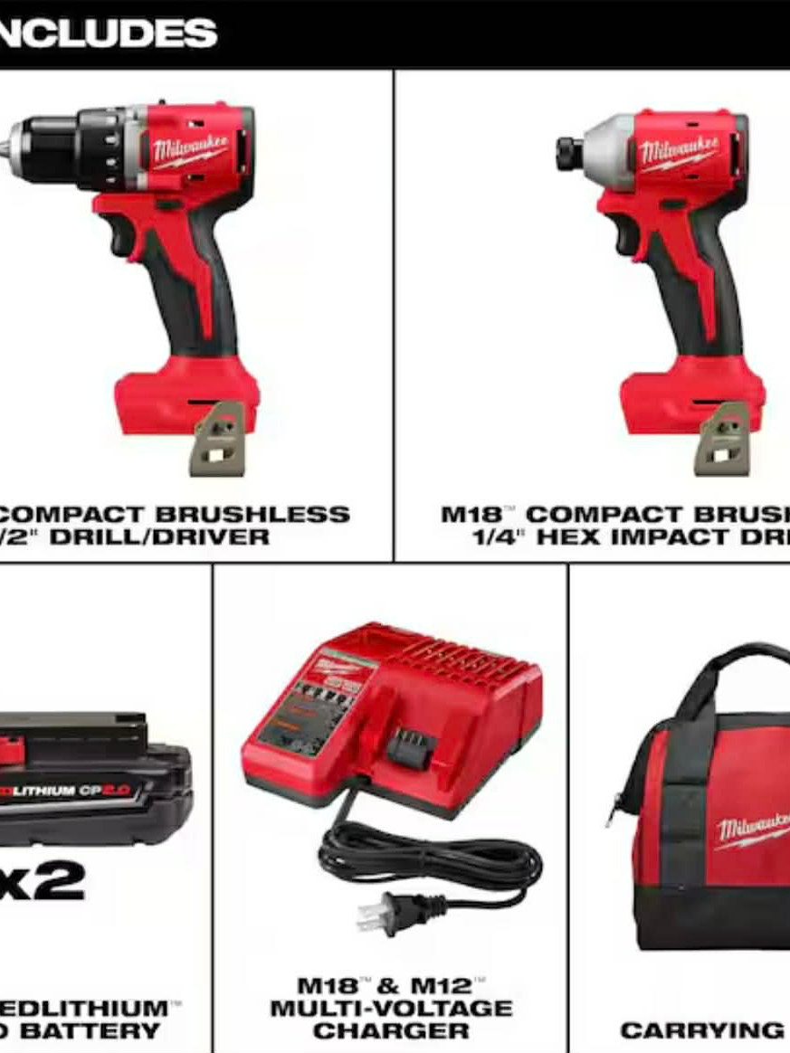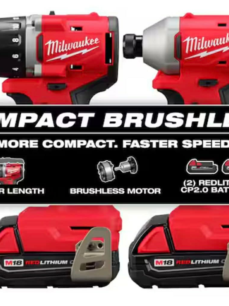 Milwaukee 3692-22CT M18 18V Lithium-Ion Brushless Cordless Compact Drill/Impact Combo Kit (2-Tool) w