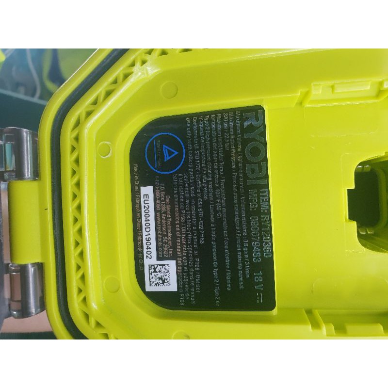 RYOBI RY121350 18-Volt 320 PSI 0.8 GPM Cold Water Cordless Power Cleaner (Tool Only), Brand new