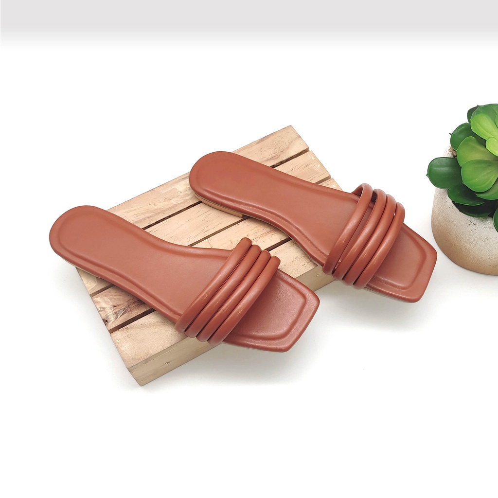 R&A299 Flat Square Toe Quad Tubular Leather Slides (Narrow Fit/ Add 1 Size)