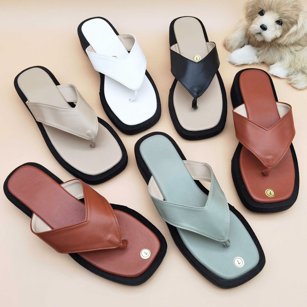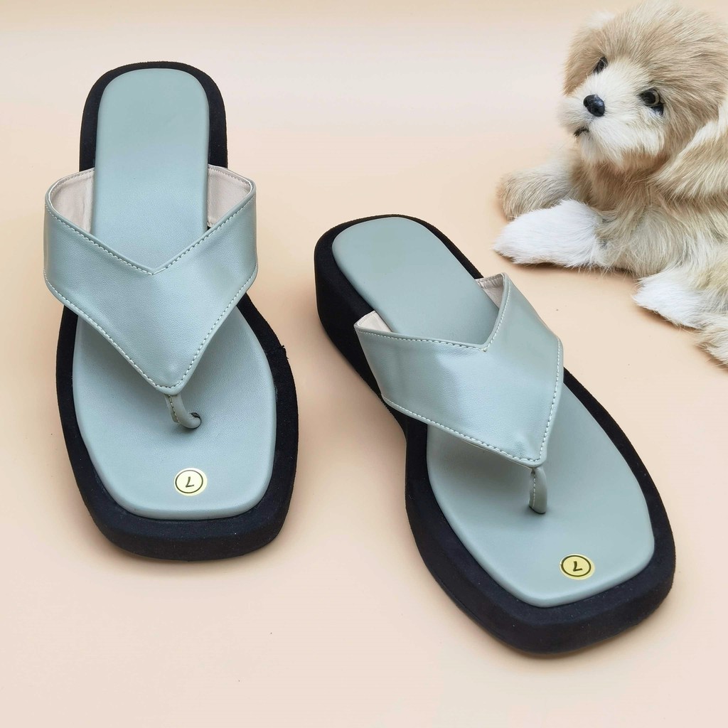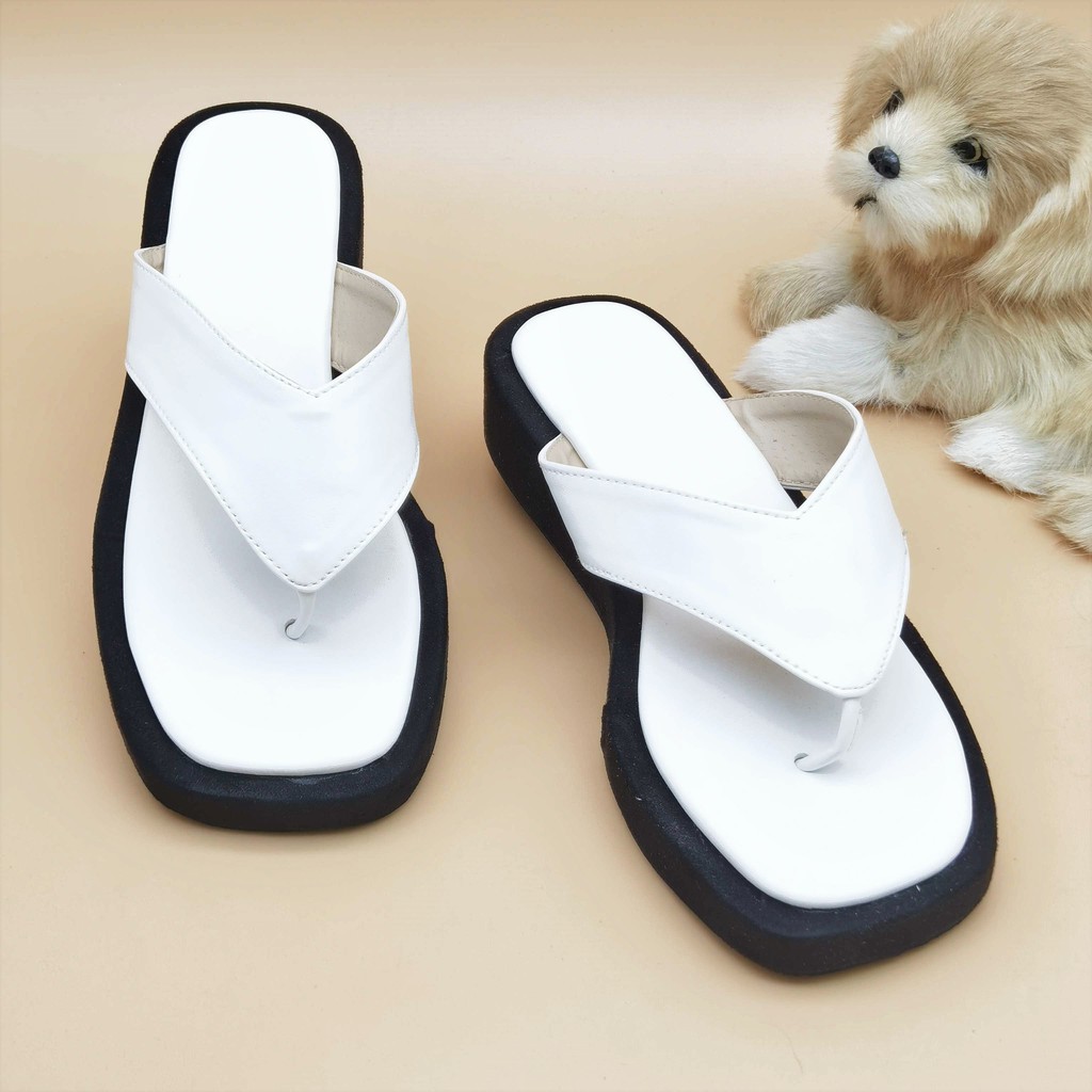 R&A455 1-Inch Thong Leather Strap Platform Sandals in Black Suede Insole Side Lining (Narrow Fit)