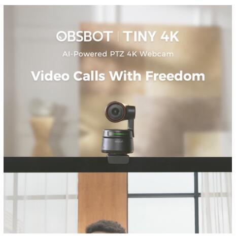 Obsbot Tiny PTZ 4K Webcam, AI-Powered Framing & Autofocus, 4K Webcam with Dual Omni-Directional Microphones
