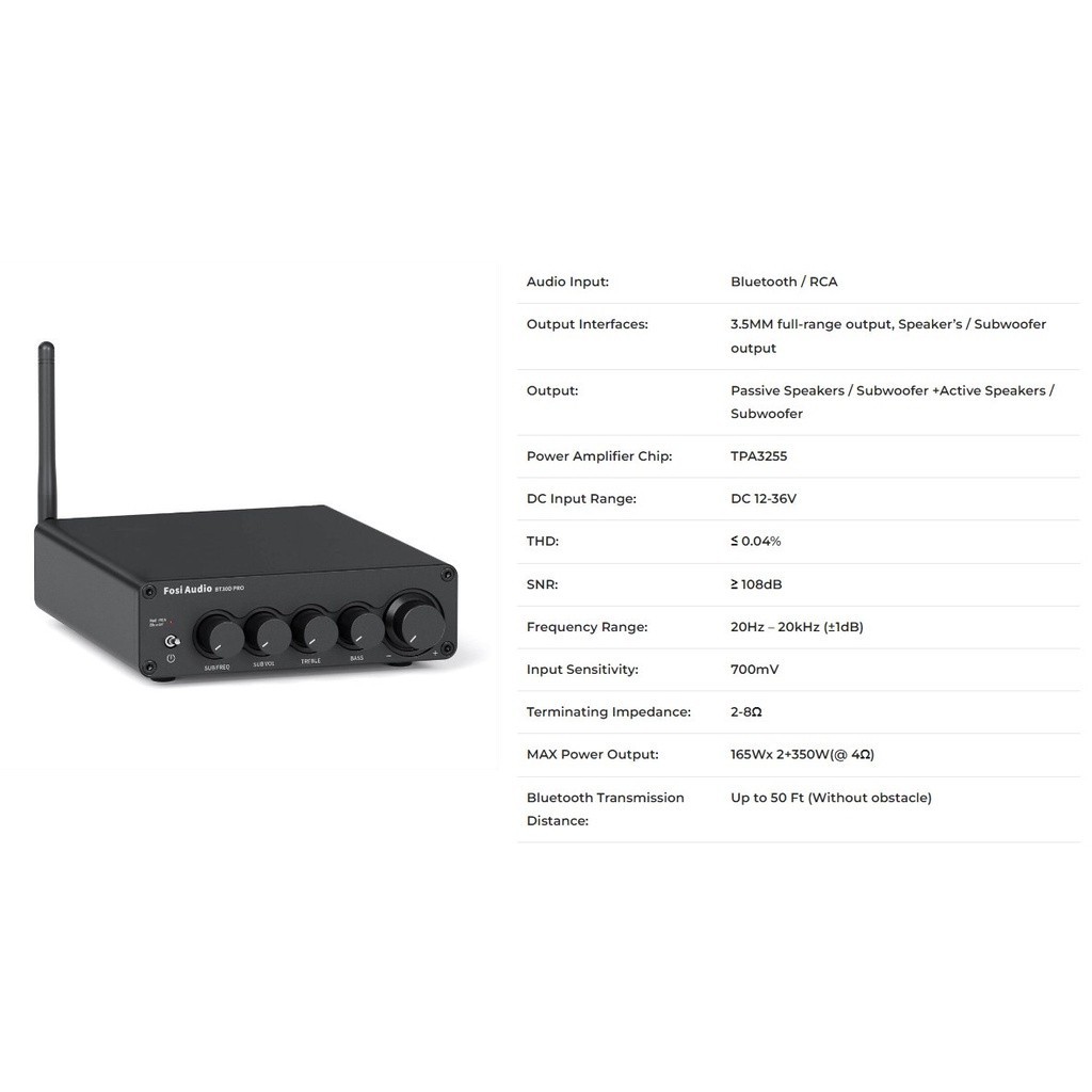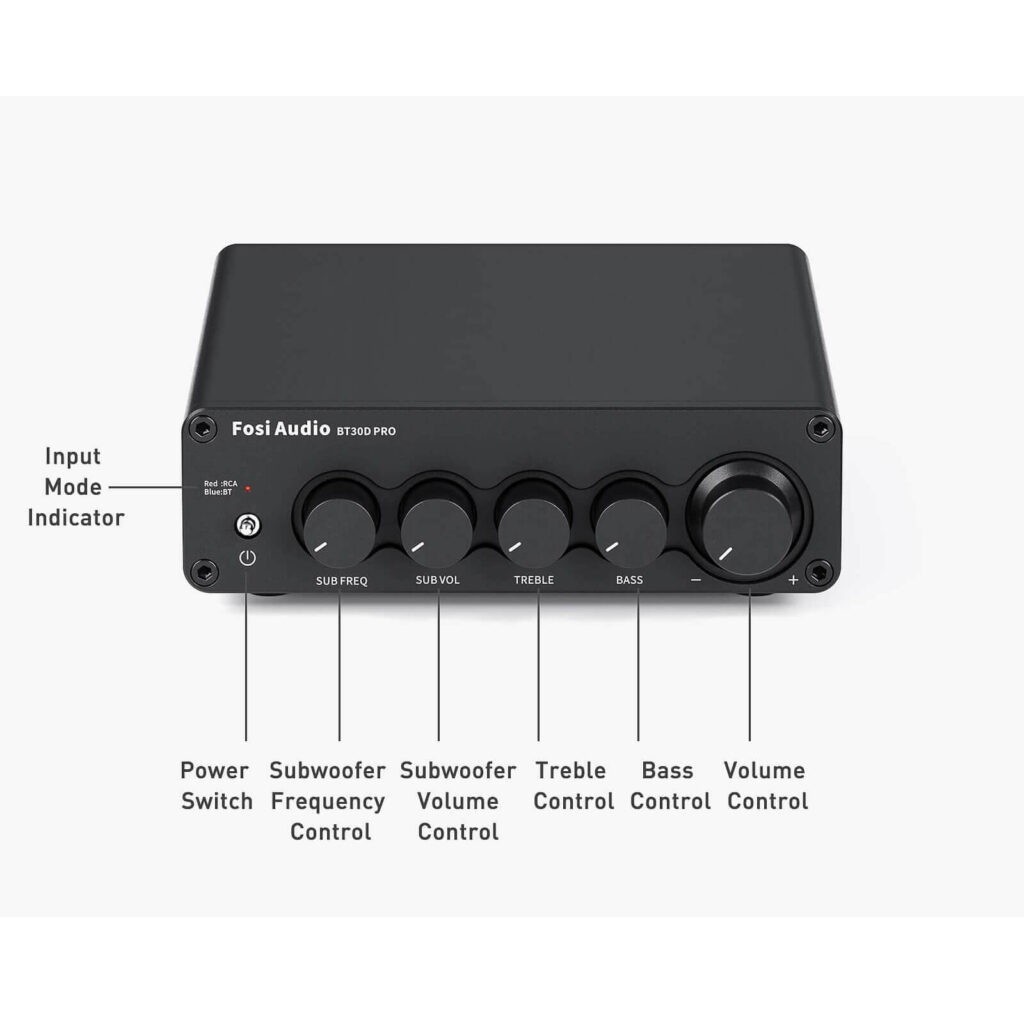 Fosi Audio BT30D Pro Bluetooth Amplifier 2.1 Channel Mini Class D Integrated Amp | SUB volume Frequency Bass Treble