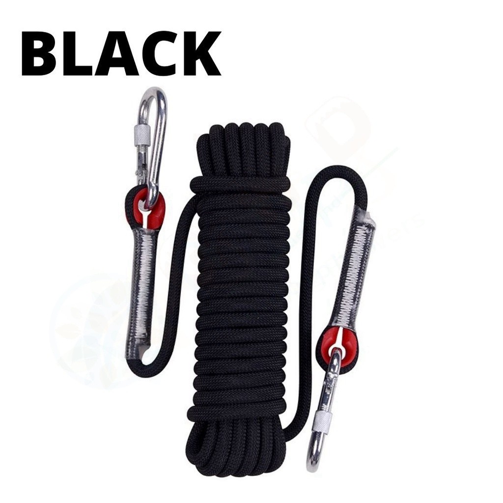 【PH STOCK】10/20M Static Utility Rope With 2 Carabiner Outdoor Safety Rope 12mm Diameter Hiking Tool