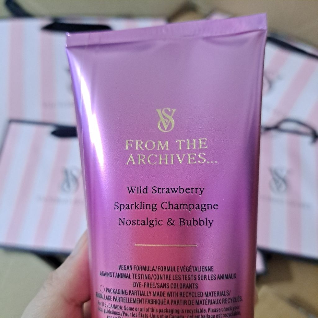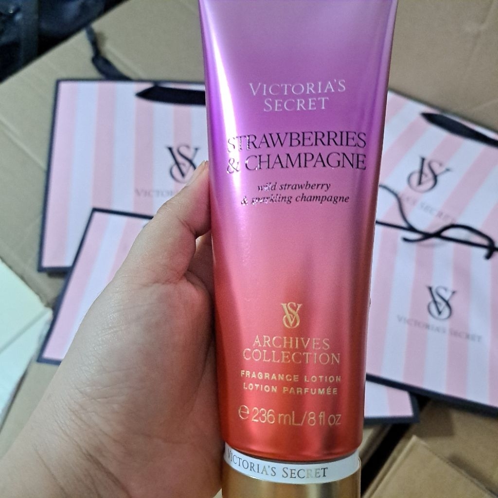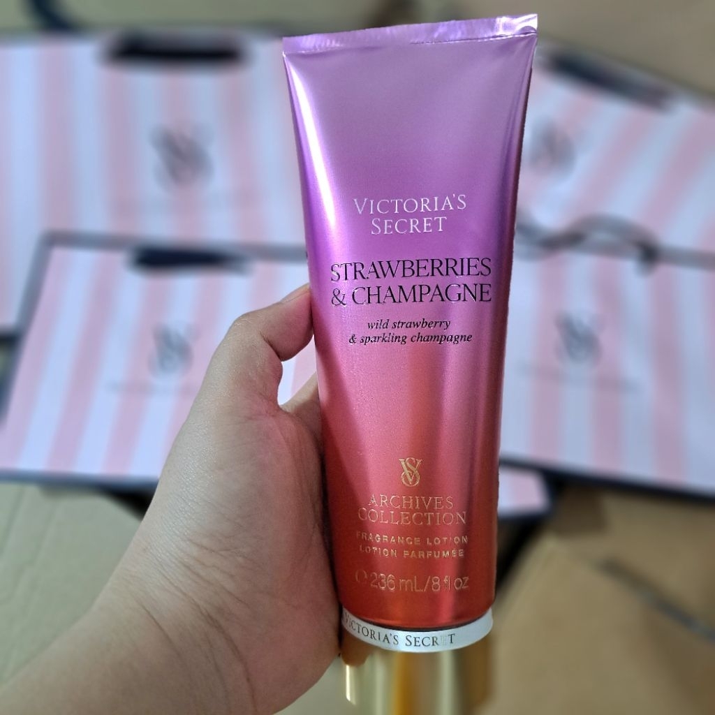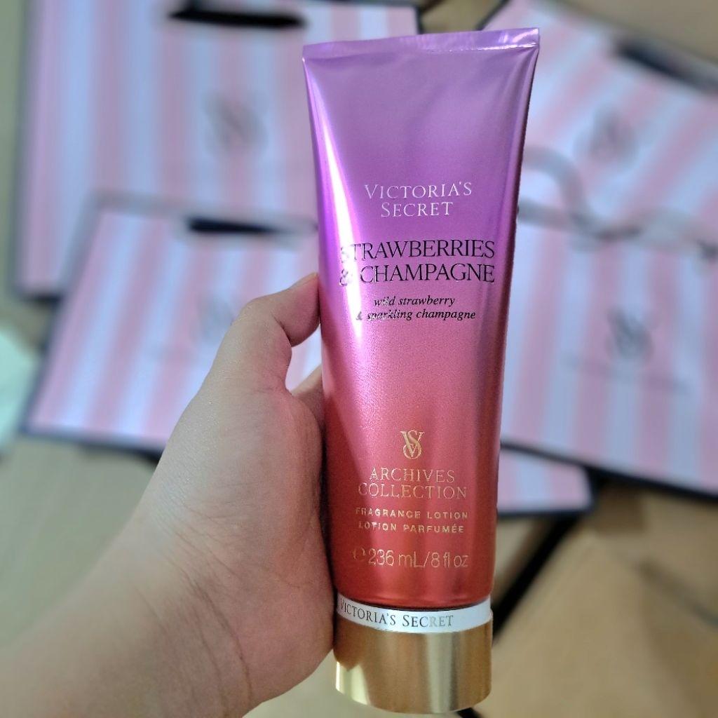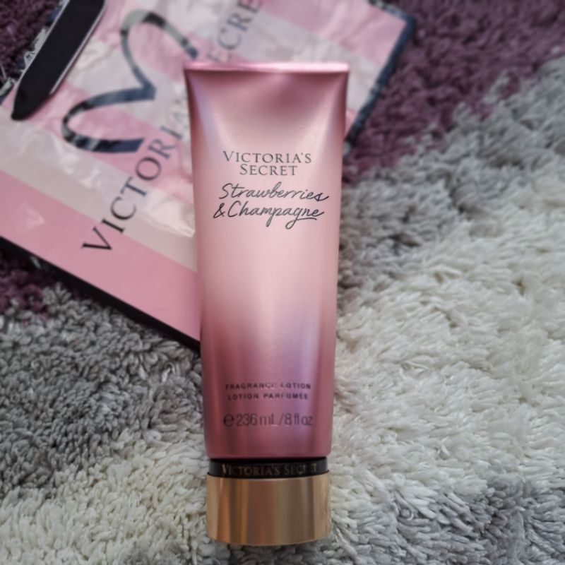 Original Victoria's Secret USA Strawberries & Champagne Fragrance Body Lotion Cream (Strawberry)