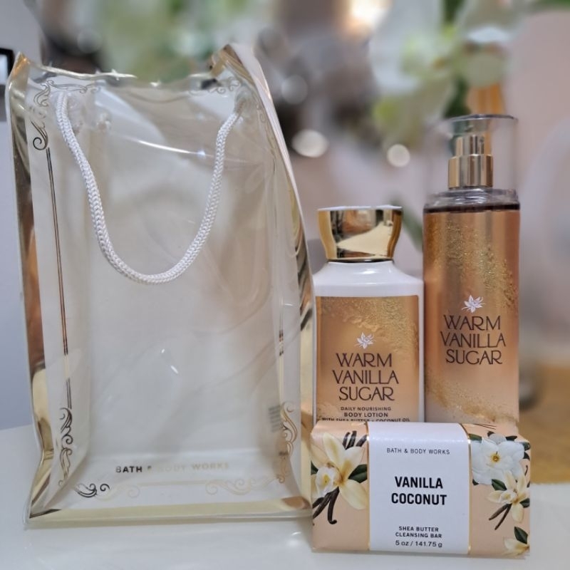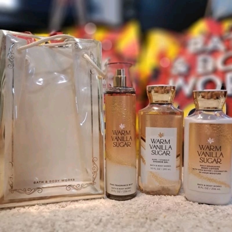 Original Bath & Body Works USA Warm Vanilla Sugar Gift Set - Mist, Body Lotion, Shower Gel