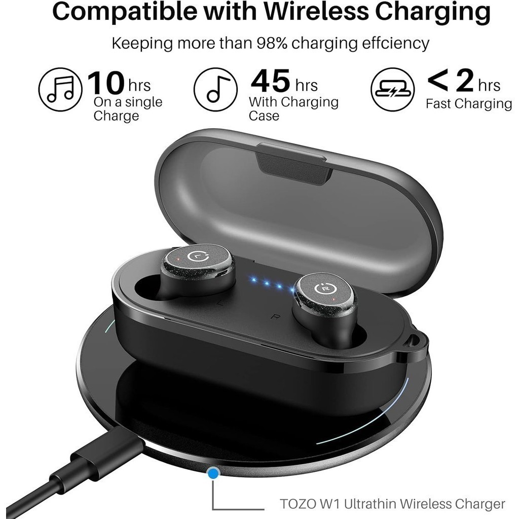 TOZO T10 Wireless Earbuds Charging Case Waterproof Stereo - Sport Black
