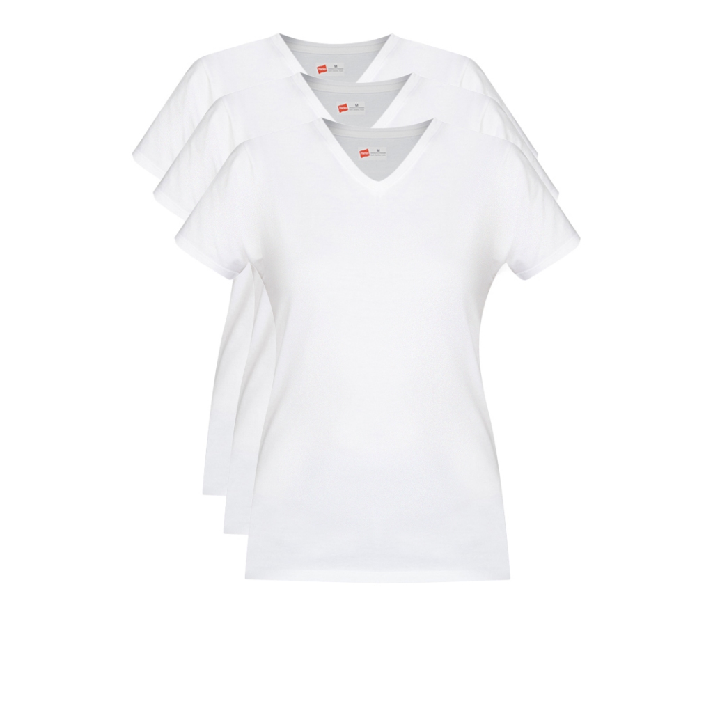Hanes Ladies White 3-Pack Tagless Cuffed V-Neck T-Shirt 70143