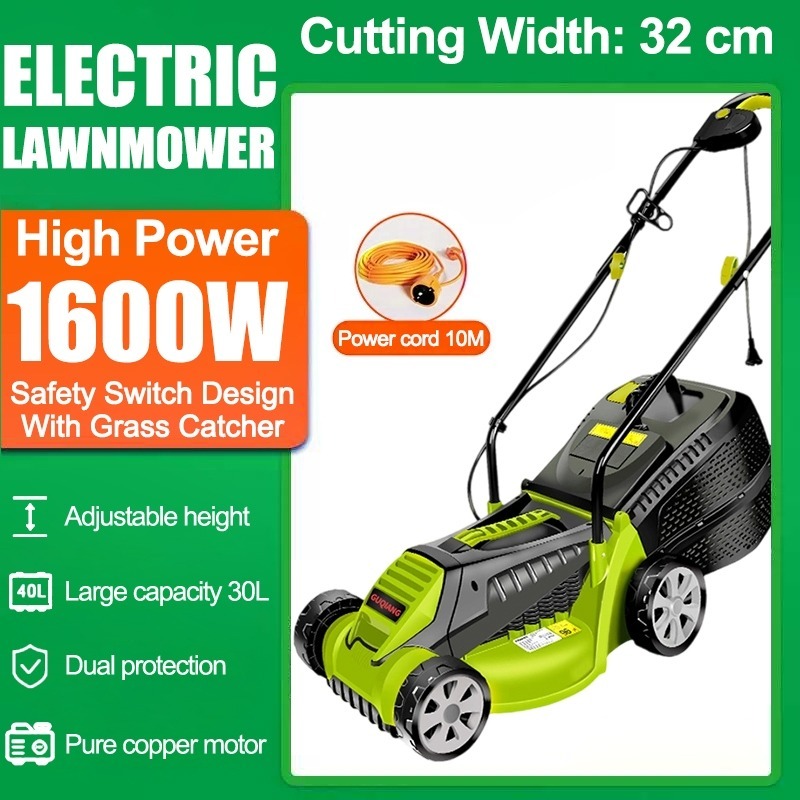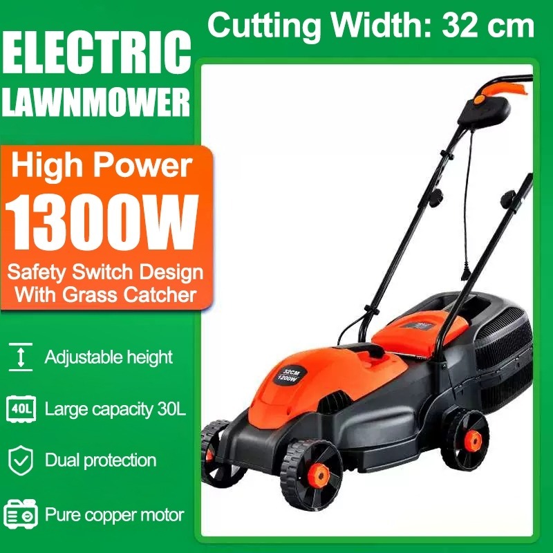 1300-1600W Portable Electric Lawn Mower Walk-behind Lawn Mower Lightweight and Easy to Store