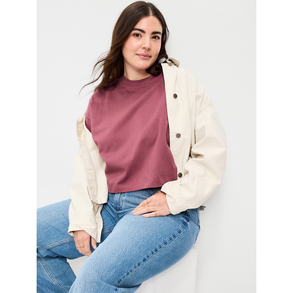 Old Navy Women's Vintage Crew-Neck Oversized Crop T-Shirt