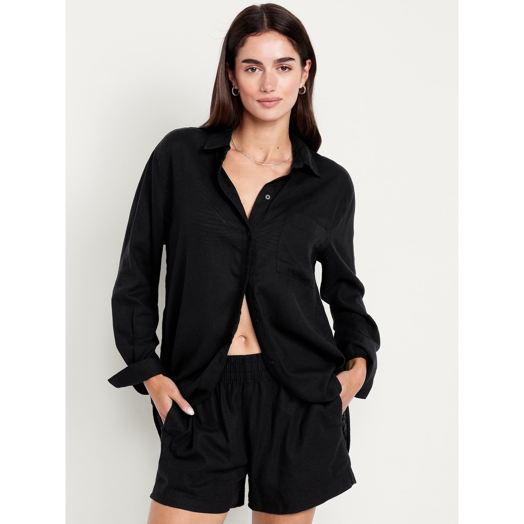 Old Navy Women's Linen-Blend Loose Button-Down Shirt