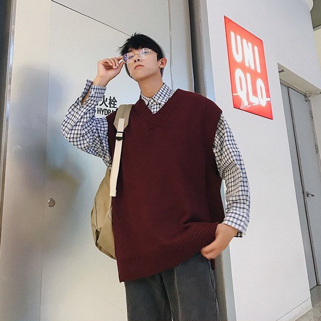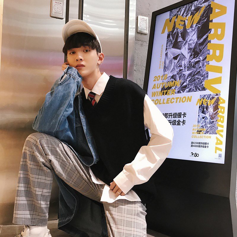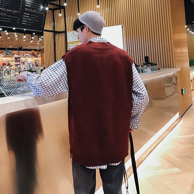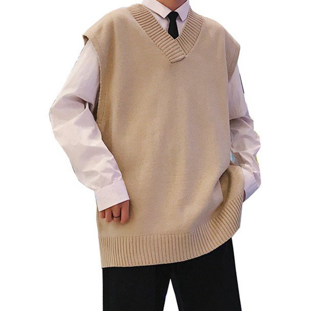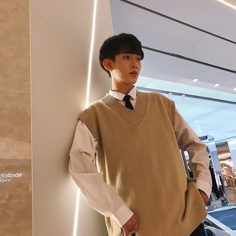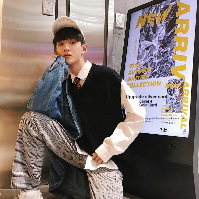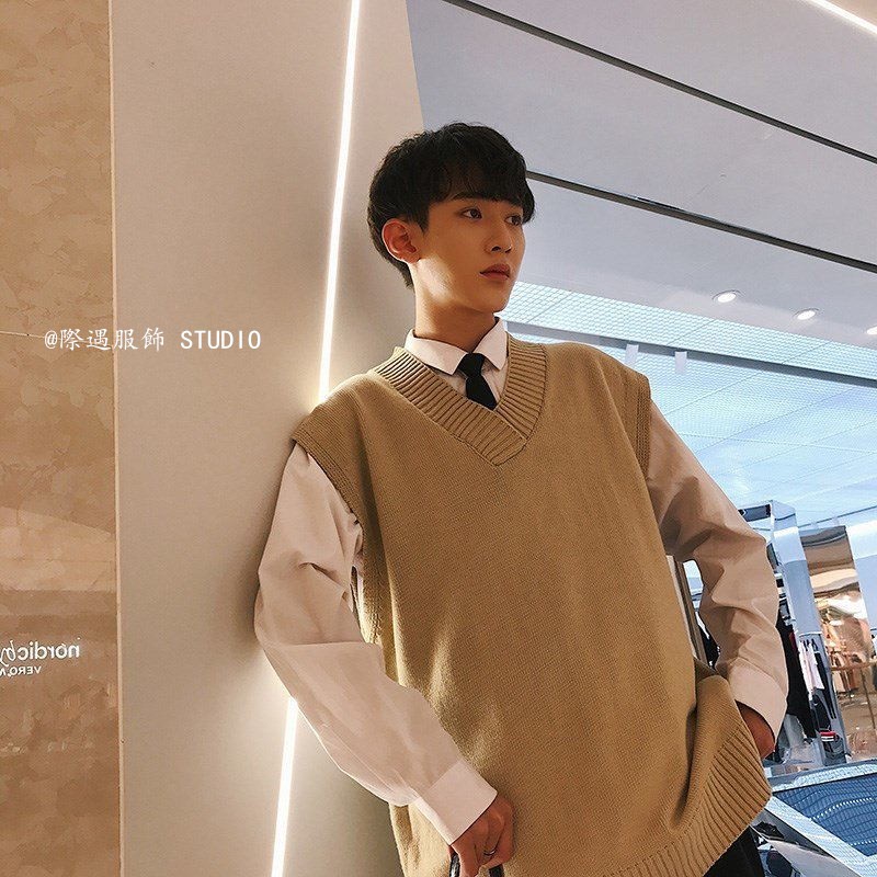 K Sweater Vest 3 Colors Men Waistcoat V-Neck Sweater Korean Trendy Sweater Vest Hong Kong Style Youth Vest Autumn British Preppy Style Couple Plain Vest Boys Clothing