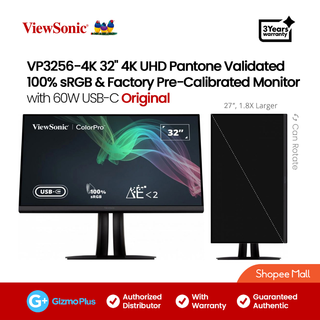 ViewSonic VP3256 - 4K - 32" ColorPro™ 4K UHD IPS Monitor w/ 60W USB C, sRGB, HDR10 & Pantone