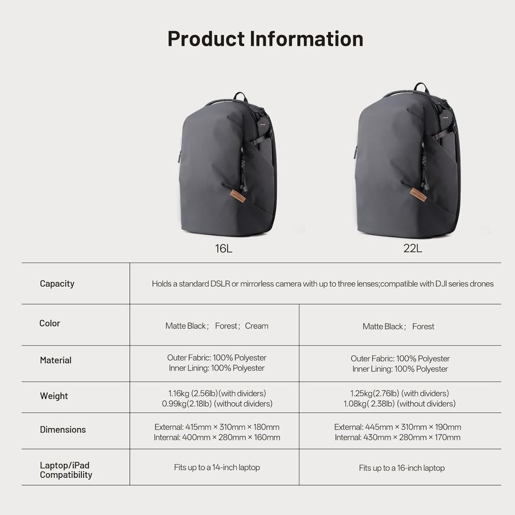 PGYTECH OneGo Lite 16L | 22L Camera Backpack Water-Resistant DSLR/Mirrorless Bag for Camera
