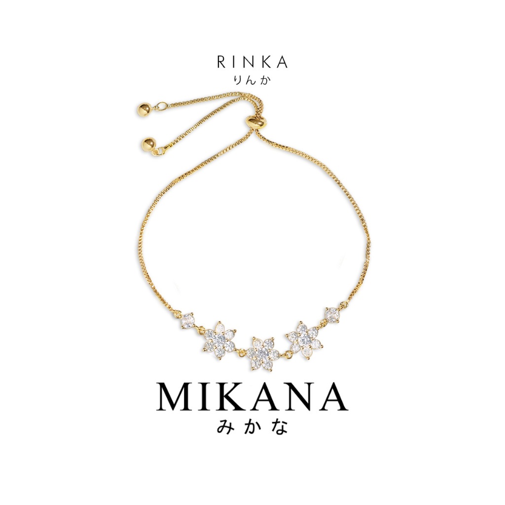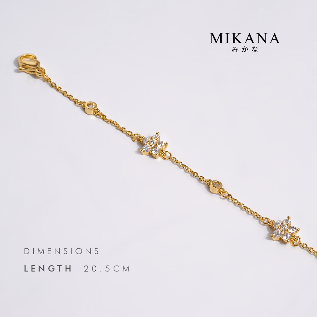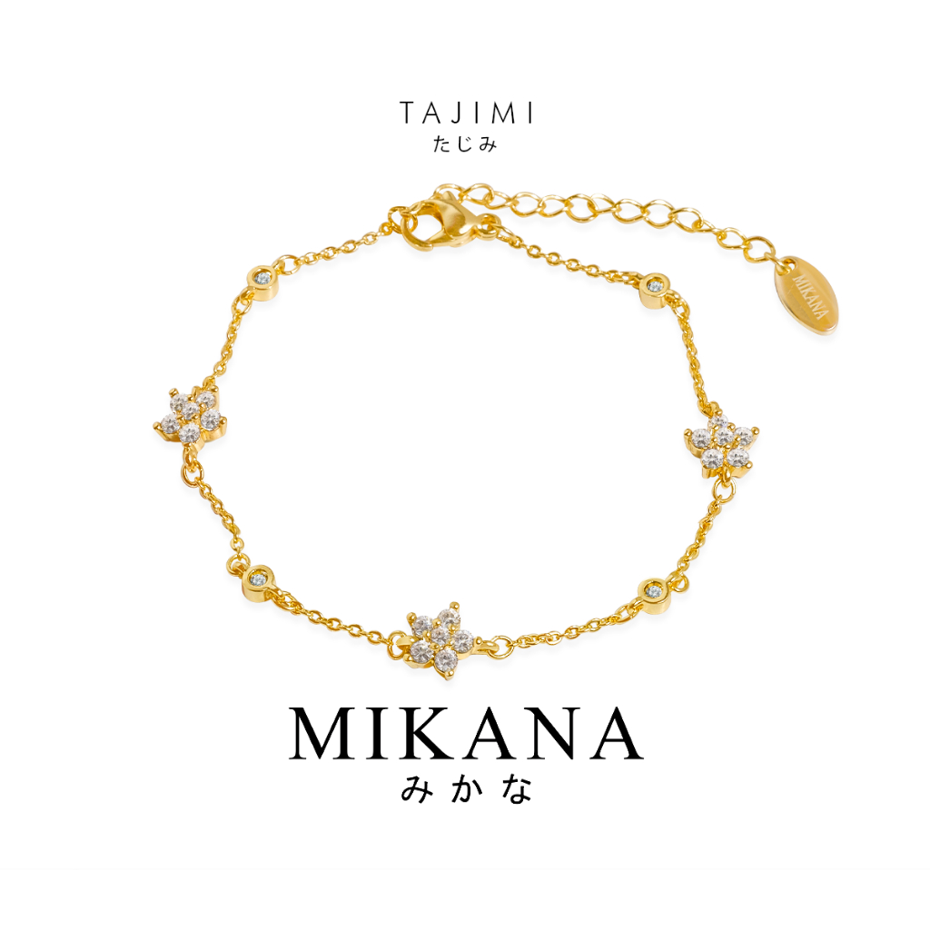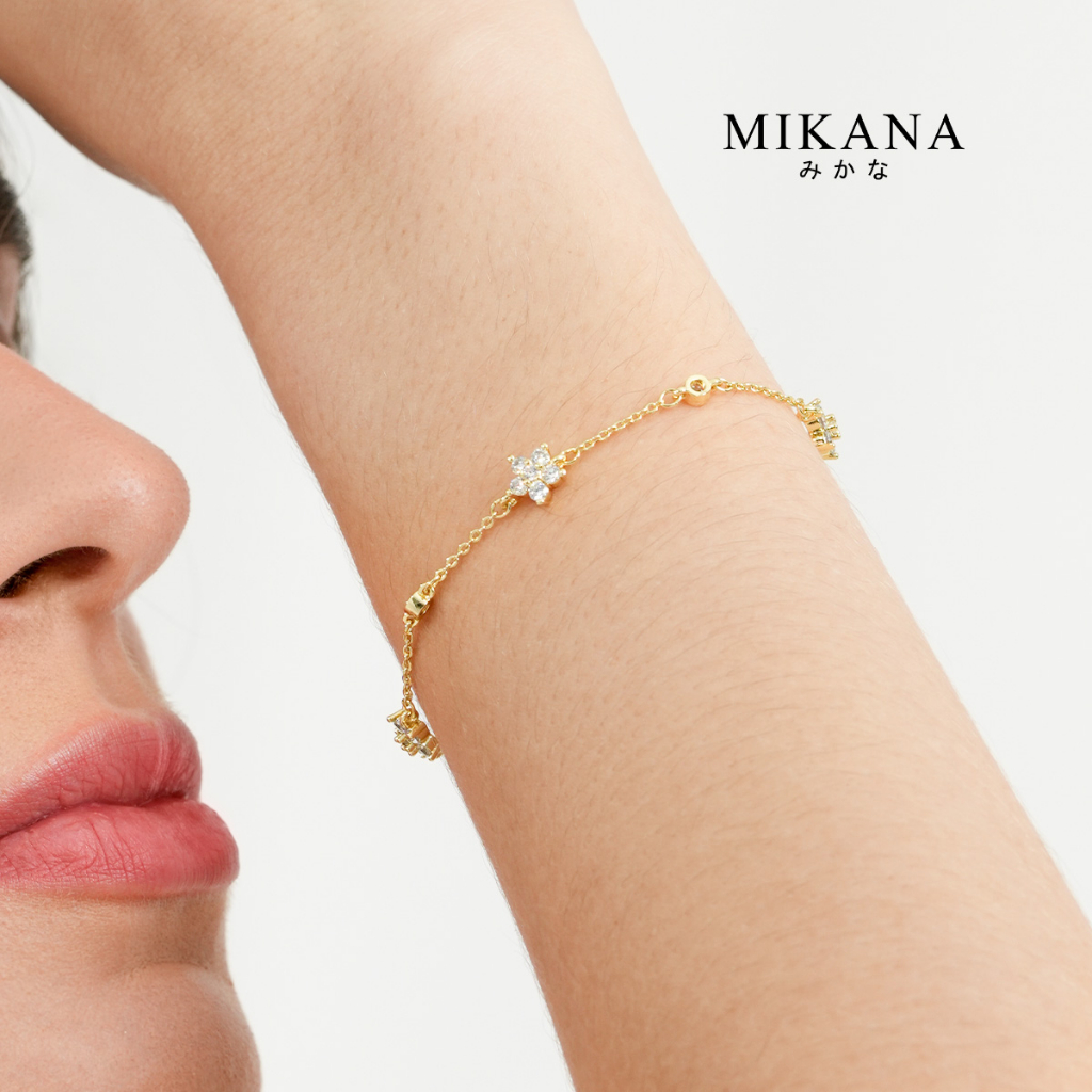 Mikana 14k Gold Plated Tajimi Flower Charm Chain Link Bracelet for Women bracelets birthday gift box