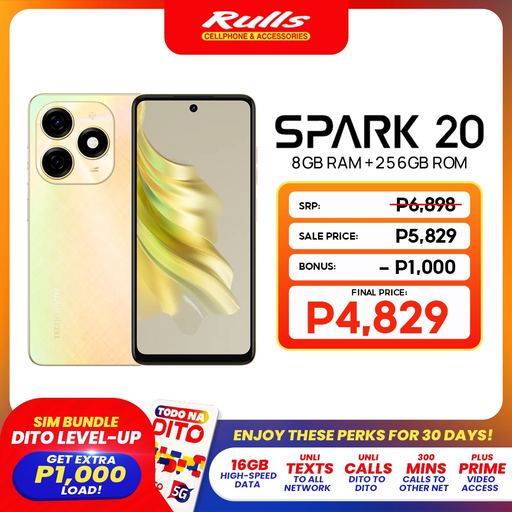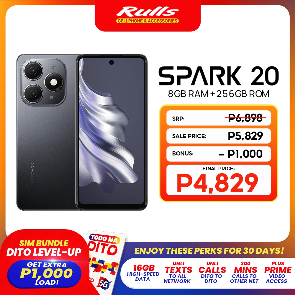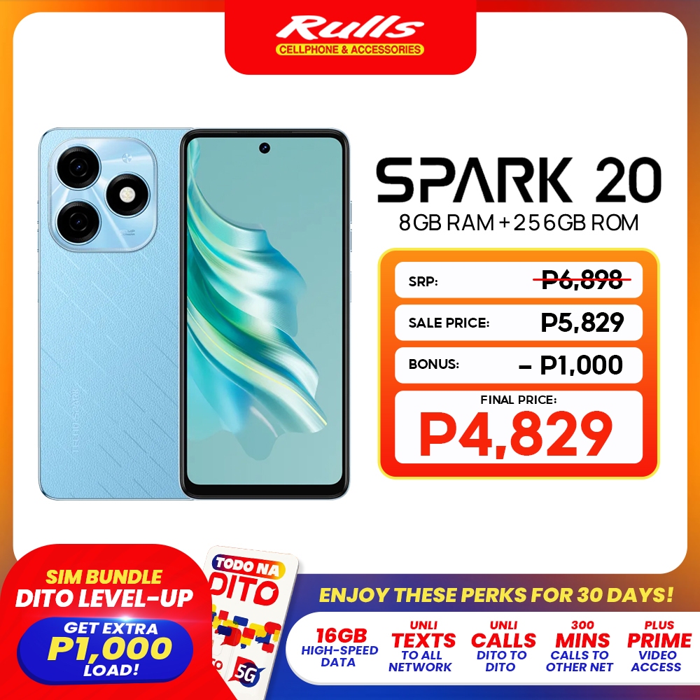 TECNO Spark 20 Smartphone | 8GB RAM + 256GB ROM | MTK G85 | 50MP Main Camera (EARN P1000 BONUS LOAD)