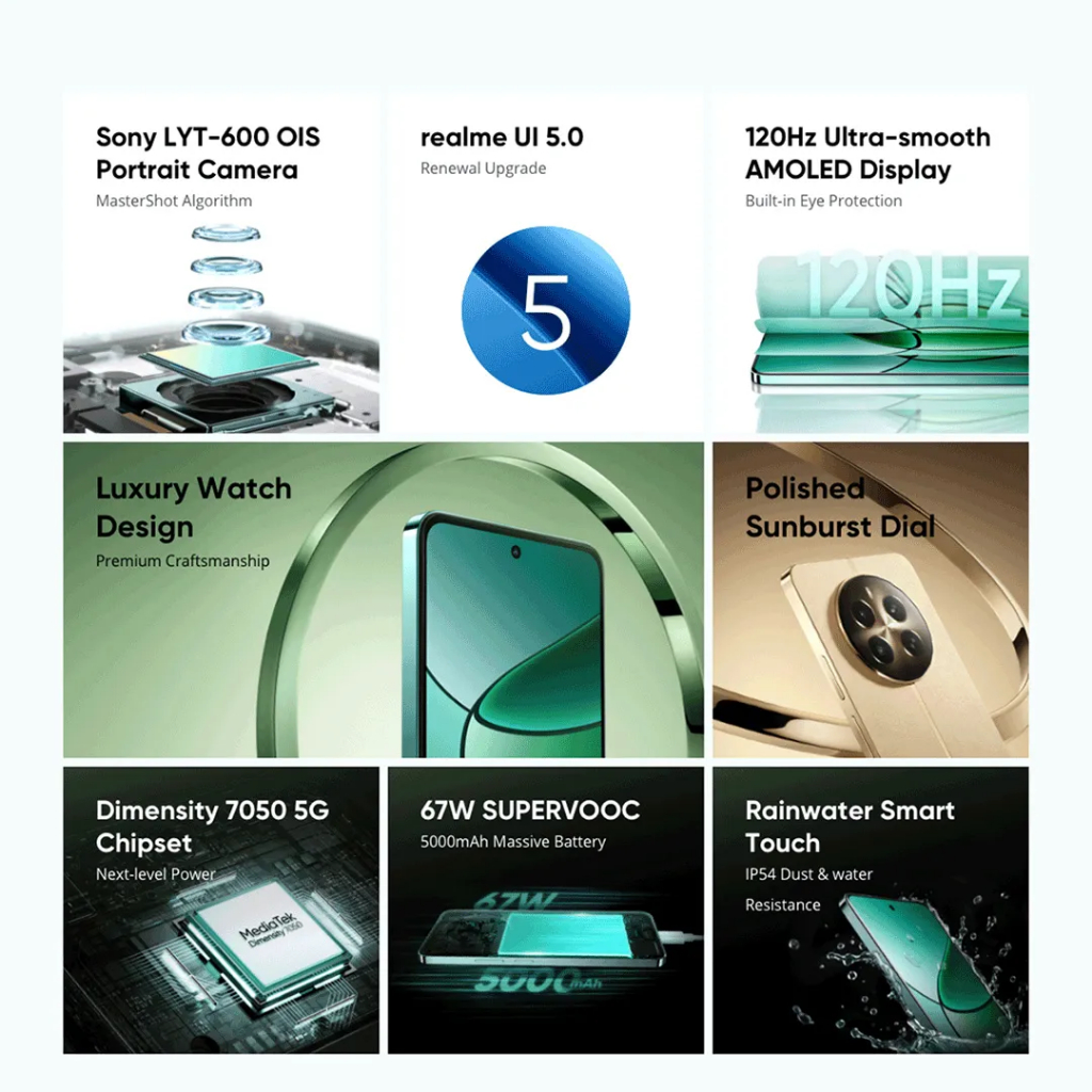 realme 12+ 5G Smartphone | 8GB+256GB | MTK Dimensity 7050 5G | 50MP Sony LYT-600 OIS Camera