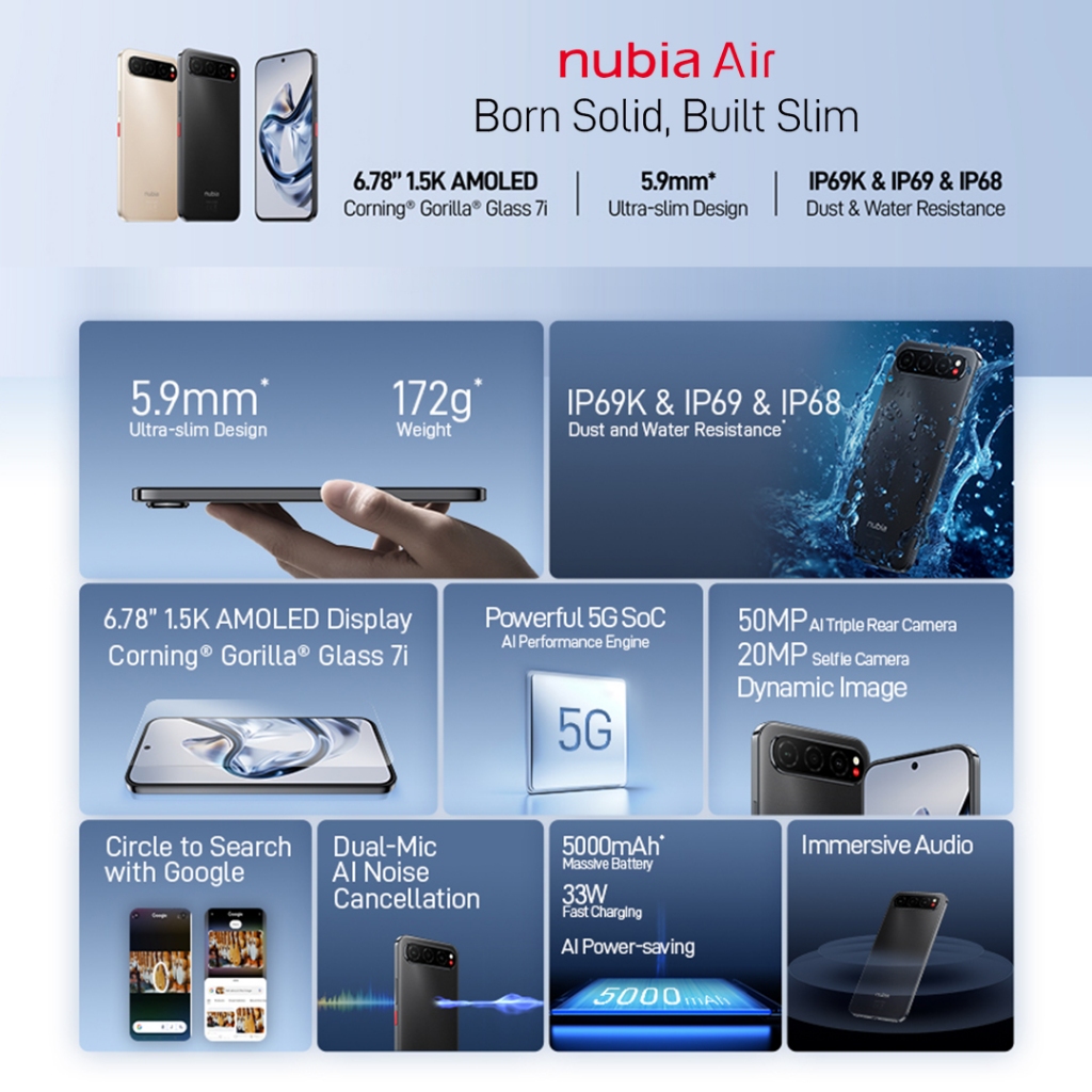 nubia Air (8+256GB) Smartphone | UNISOC T8300 Chipset | 50MP Main Camera | 6.8” 120Hz 1.5K AMOLED