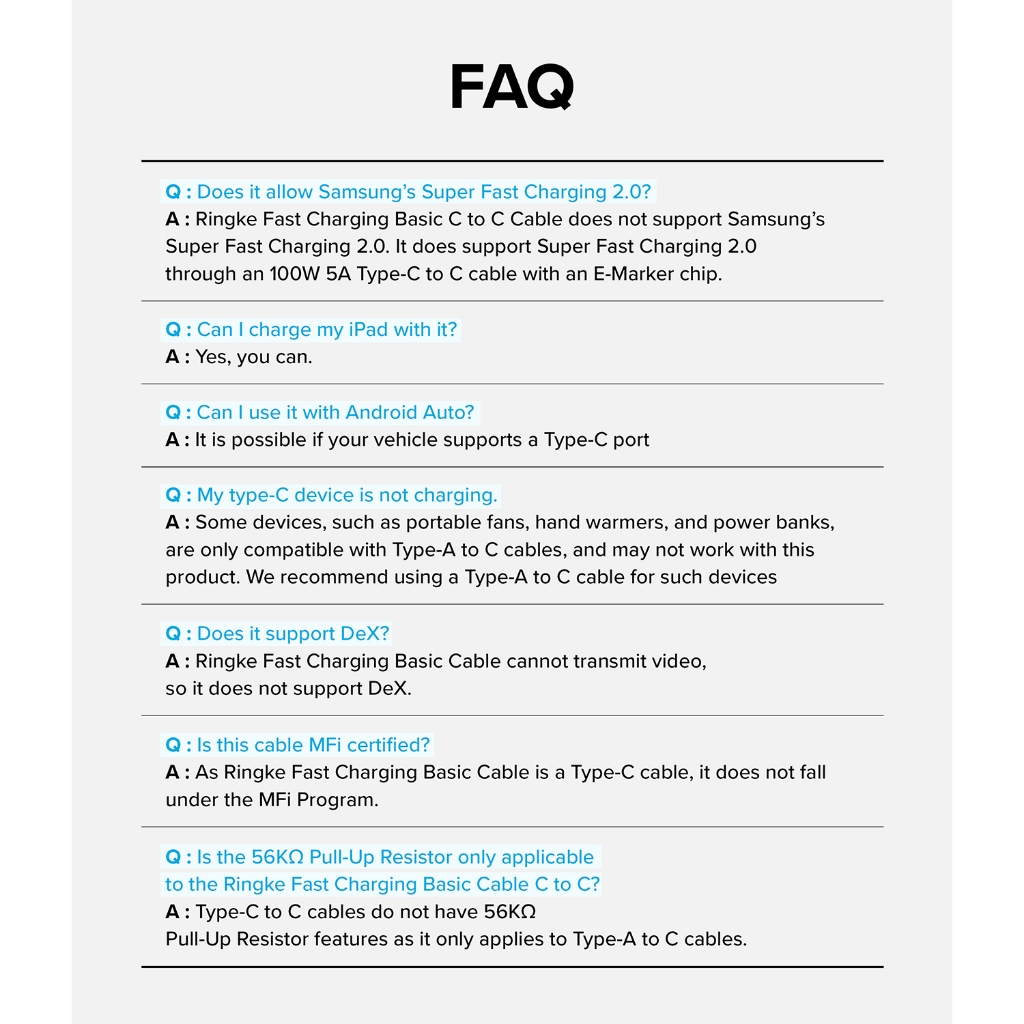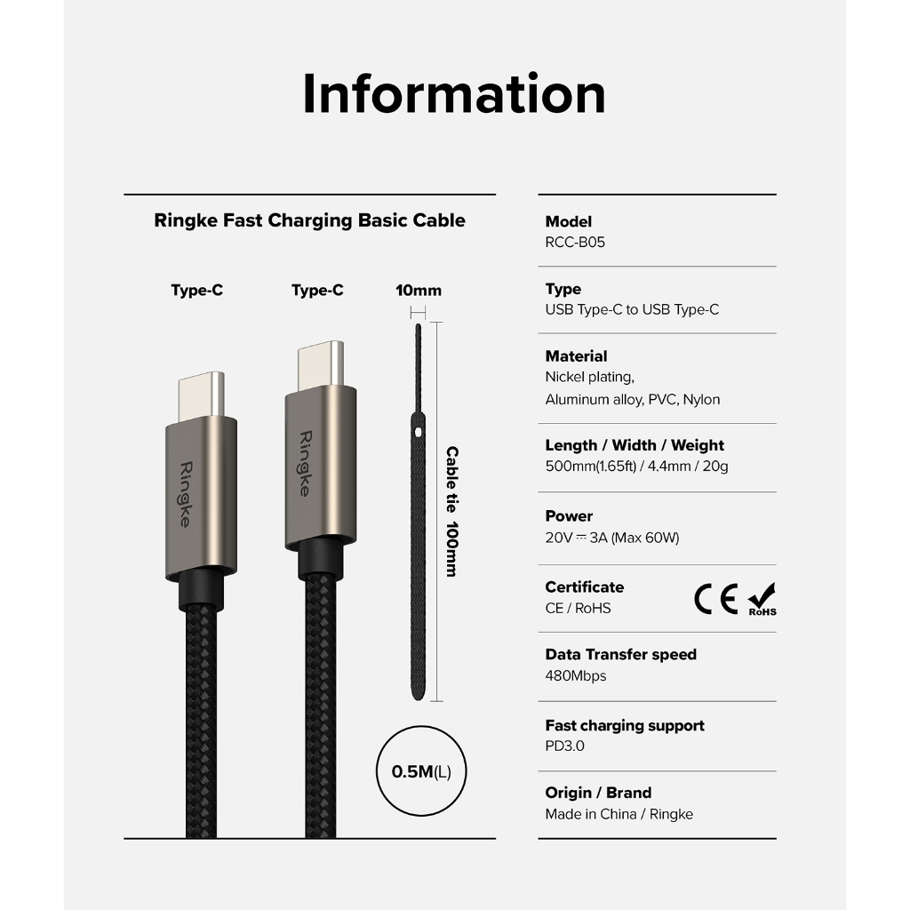 Ringke Fast Charging Basic Cable USB-C to USB-C High Speed Cable for Smart Devices