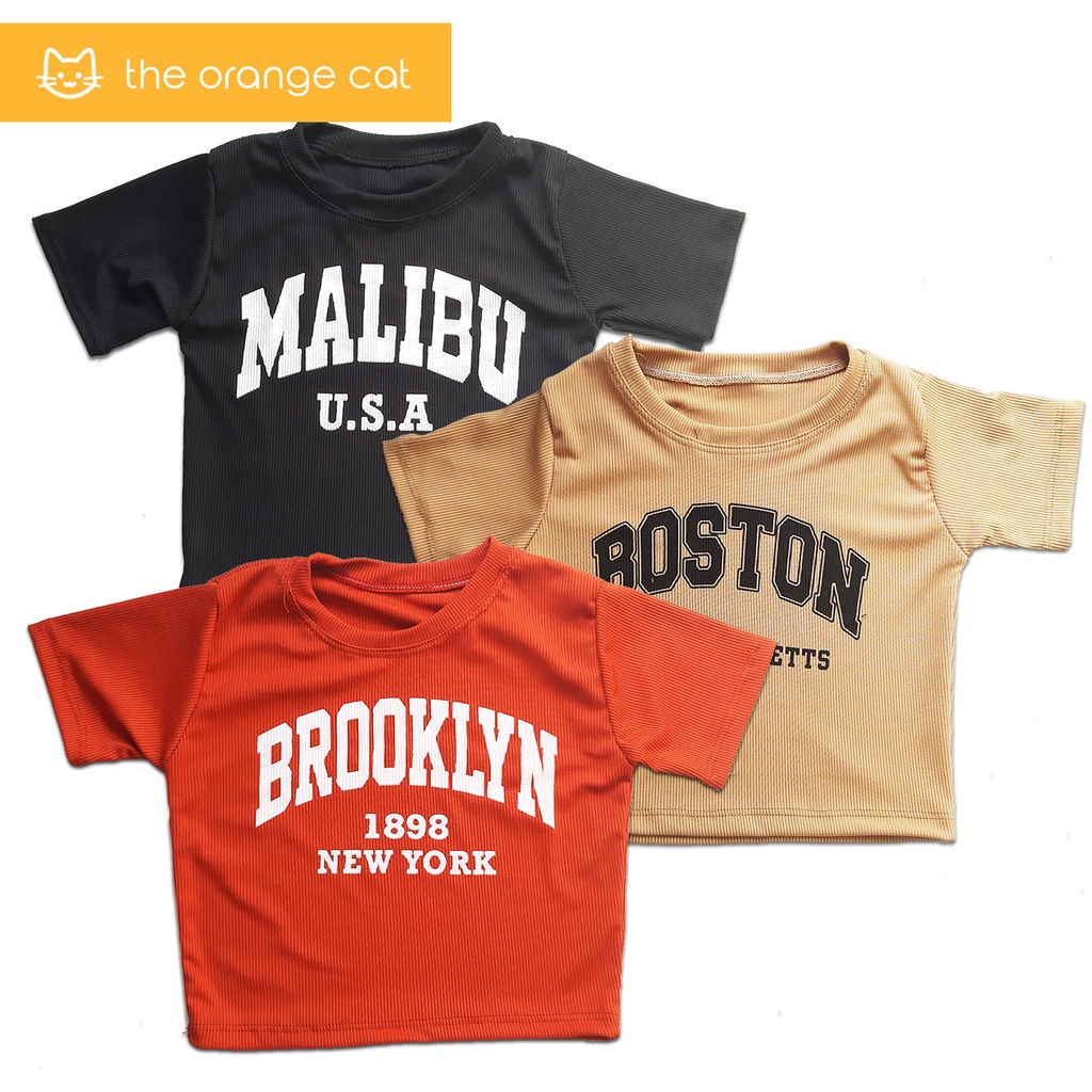 WT01 Womens Knitted Baby Tee Crop Top Statement Boston Brooklyn Malibu Fits XS-Small