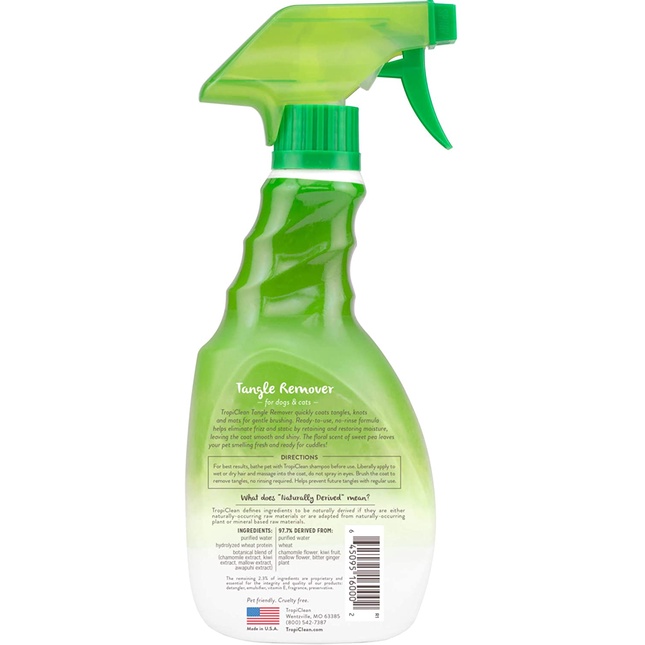 TropiClean Tangle Remover Spray for Pets - Made in USA Ready to Use, Reduces Brushing time 16oz