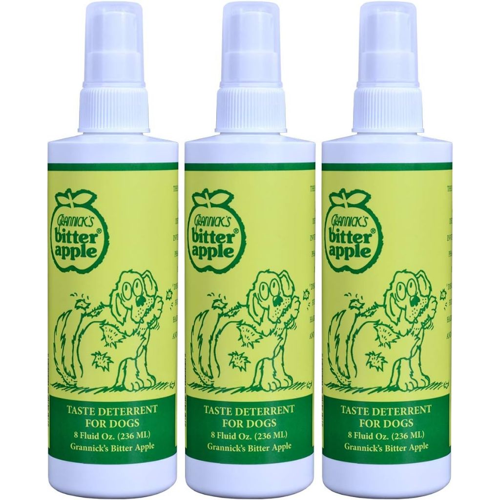 Grannicks Bitter Apple Taste Deterrent No Chew Spray for Dogs, 8oz to prevent chewing on furniture.