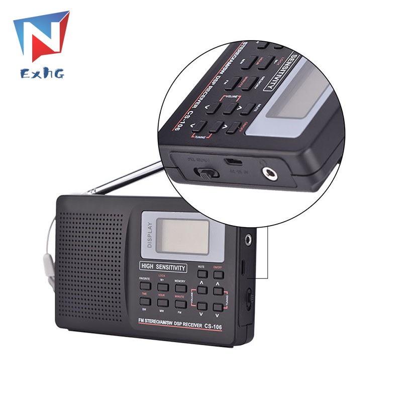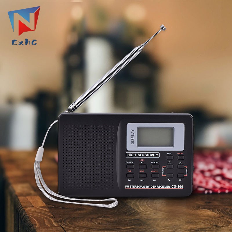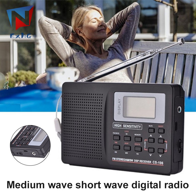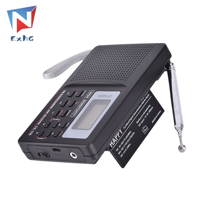 ExhG❤❤❤High quality Portable Digital World Full Band Radio Receiver AM/FM/SW/MW Radio with External