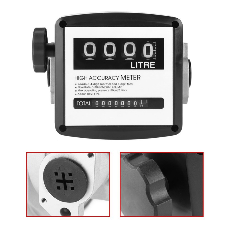 Mechanical Fuel Gauge 4-Digit Fuel Flow Mechanical Fuel Flow Meter 25Mm (1 inch Internal Thread) 5-30 GPM/20-120L/Min