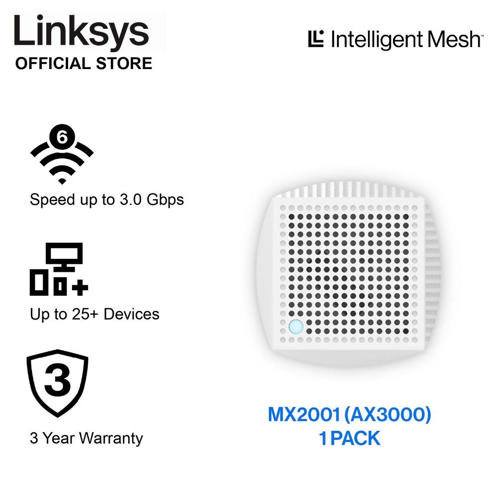 Linksys Atlas 6 AX3000 Dual Band Mesh WIFI 6 System, 1 Pack (MX2001)