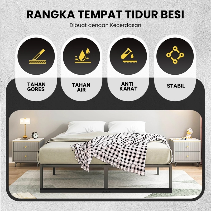 Iron Bed Frame Queen&King size Four Sizes Heavy Duty Bed Single/Double Steel Bed Frame
