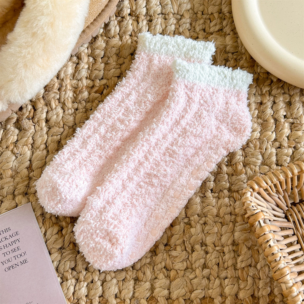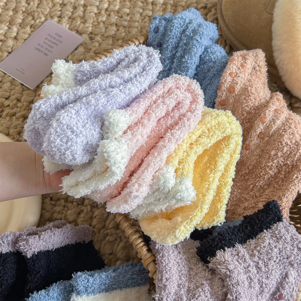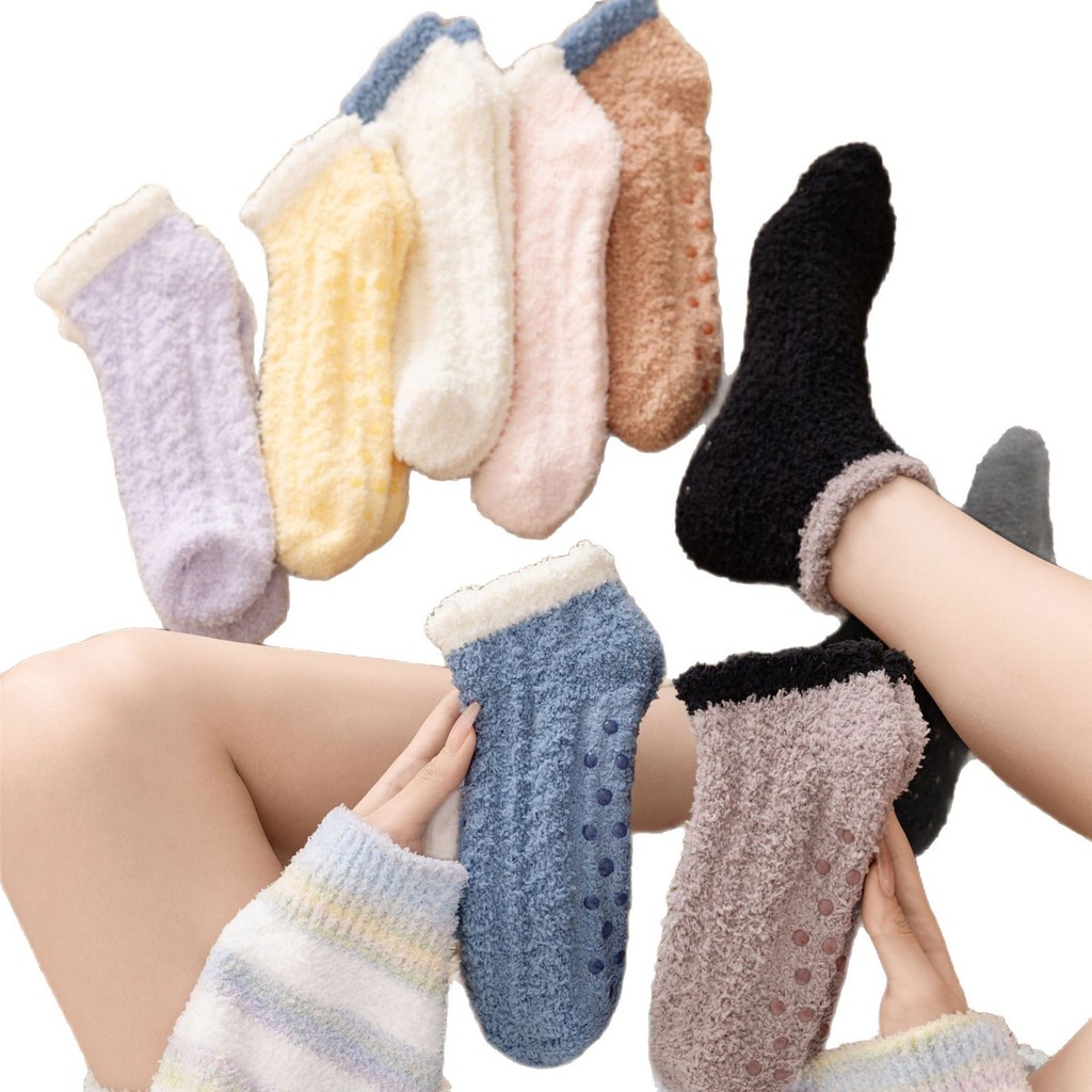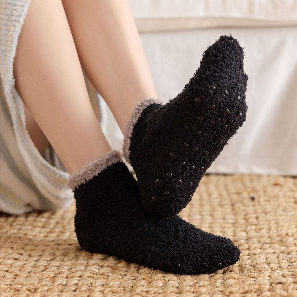 Women's Non-Slip Grip Floor Slipper Socks - Cozy Fleece House Indoor Socks with Anti-Skid Dots for Hardwood Floors