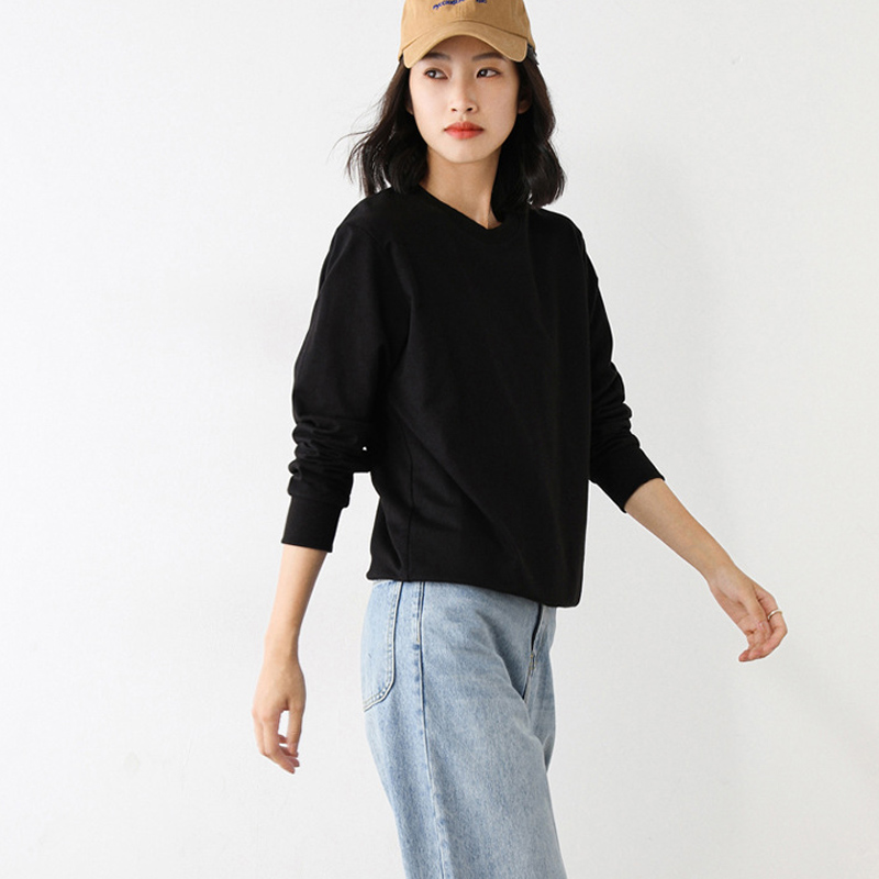 Womens Crewneck Long Sleeve Sweatshirt Casual Solid Pullover Lightweight Tops