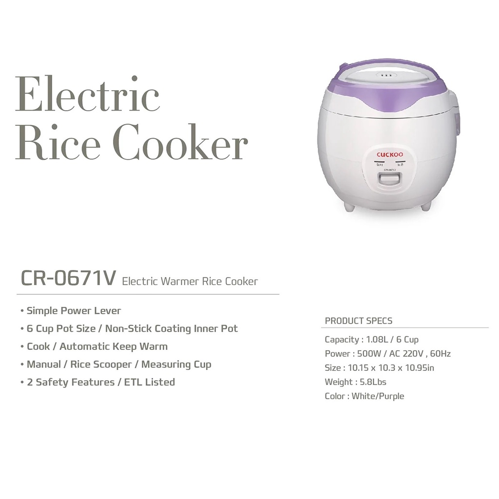 Electric Rice Cooker CR-0671V Warmer (6 Cups)