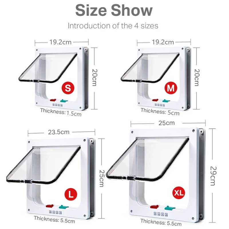 Smart Pet Door 4 Way Locking Security Lock ABS Plastic Dog Cat Flap Door Controllable Switch Door