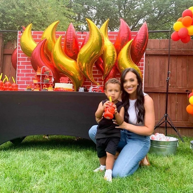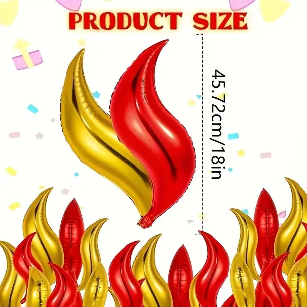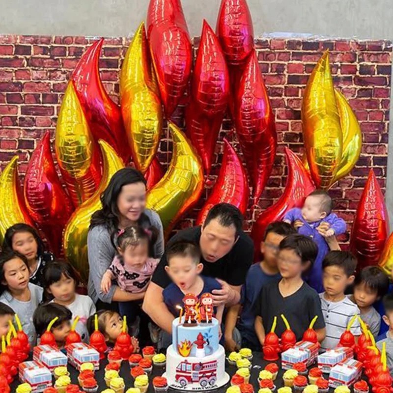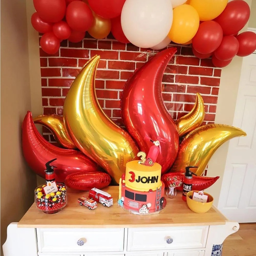10pcs Flame Balloons 18inch S Shape Fire Balloon Fireman Sam Themed Balloons Boy Birthday Firefighter Themed Party Decoration