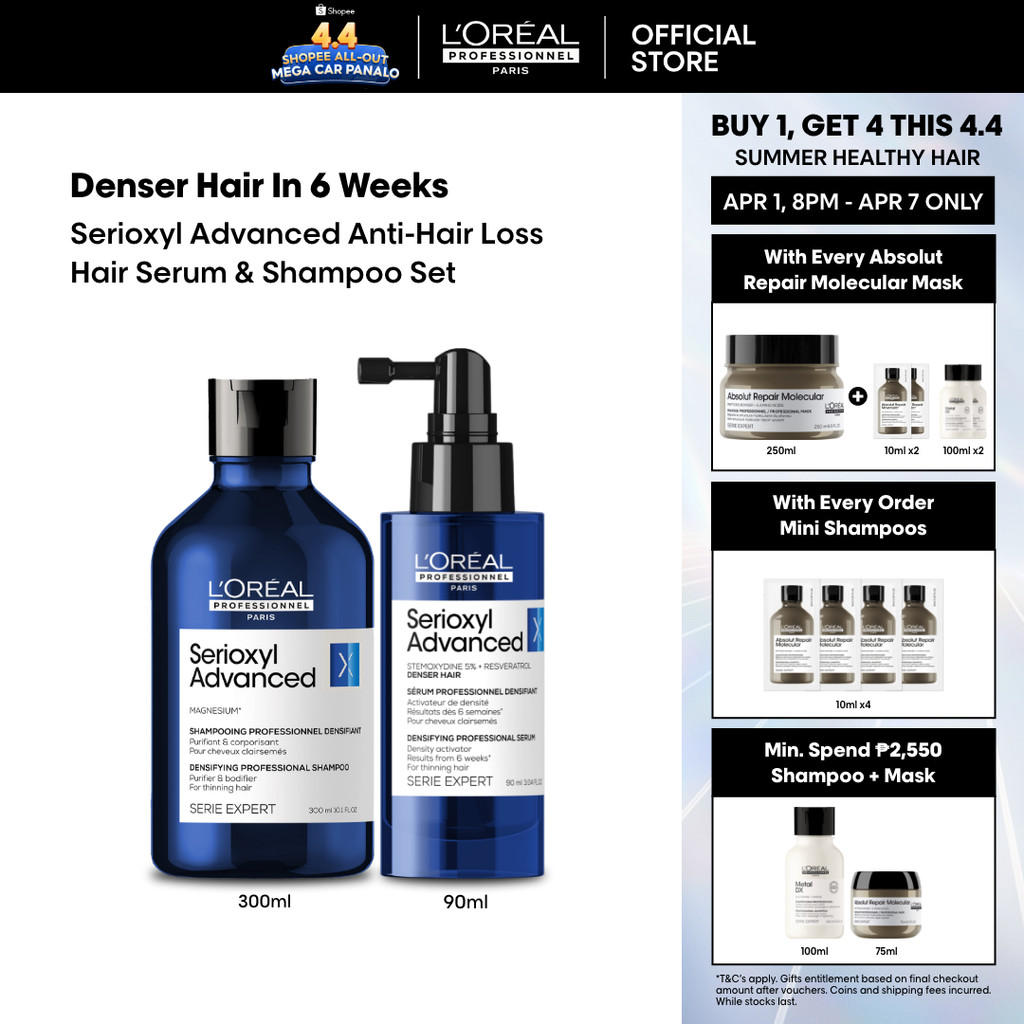 LOreal Professionnel Serioxyl Advanced Anti-Hair Loss Hair Serum and Shampoo for Hair Growth