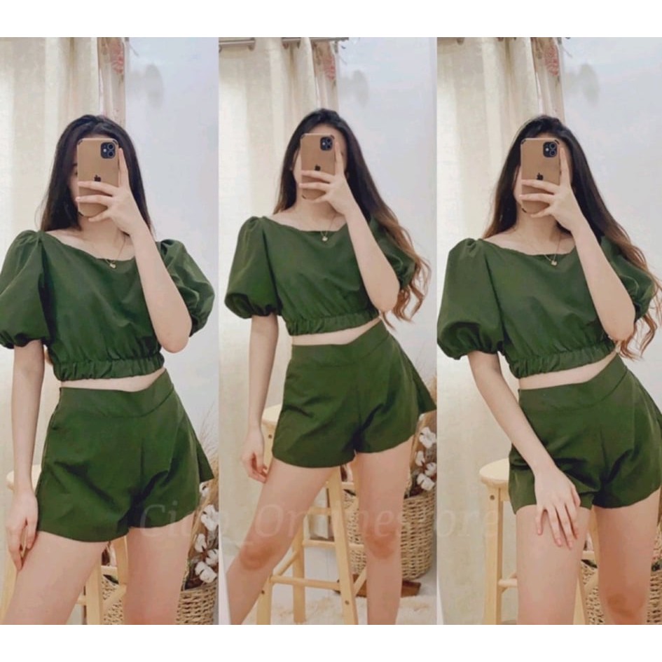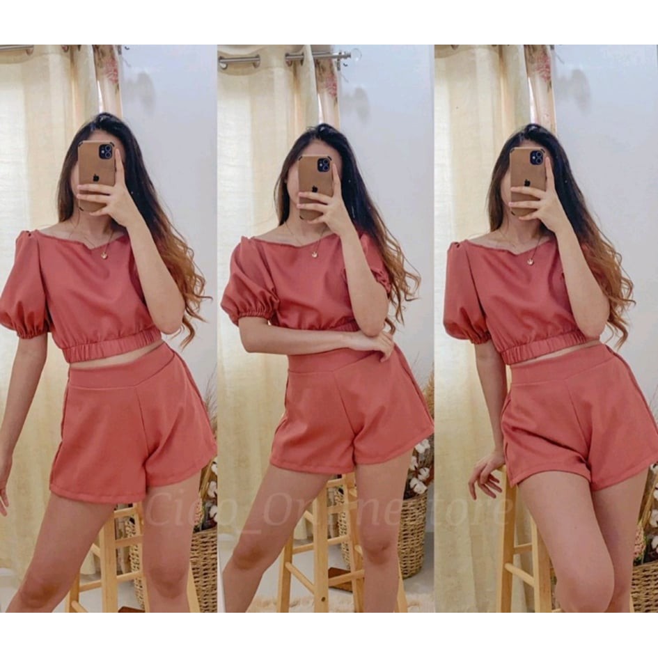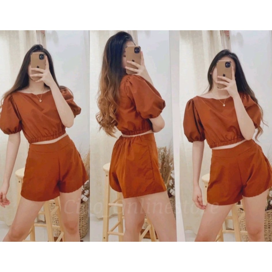 AR Puff Sleeve Top & Shorts Set Terno Coordinates