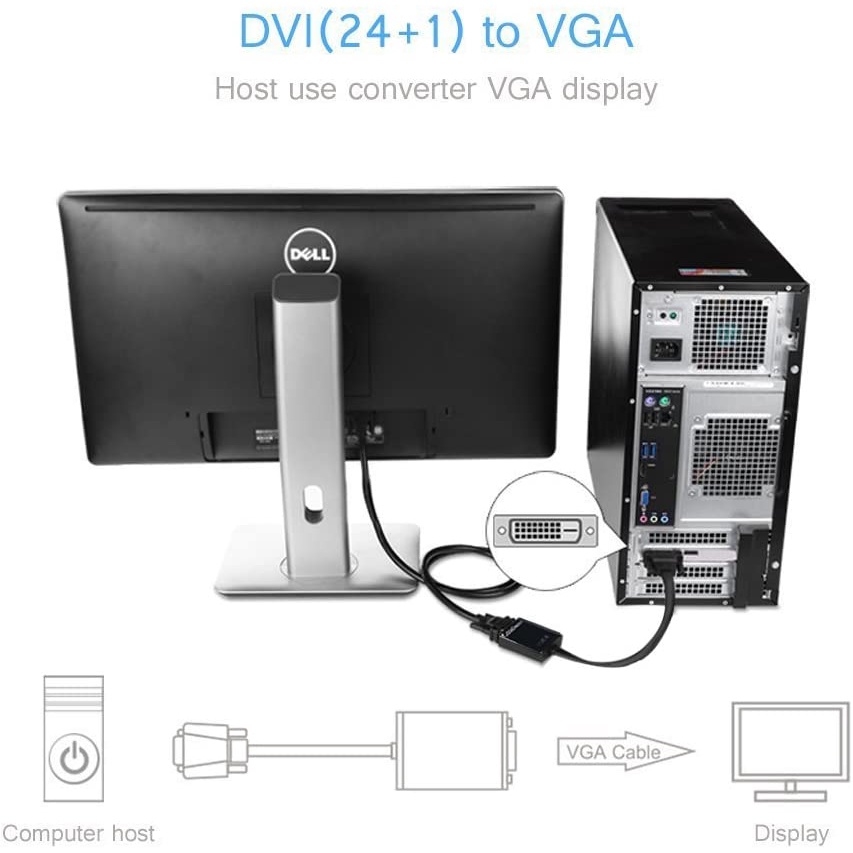 1080P DVI-D to VGA Adapter Cable 24+1 25 Pin DVI Male to 15 Pin VGA Female Video Converter Connector